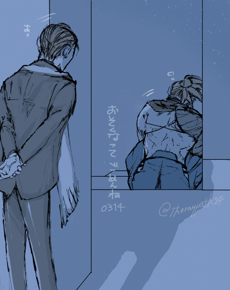 mizsoko☆quiet followPAST新武3ホワイトデー Tap to full screen (size:1146x1443).Repost is prohibited Let's send reactions! freqpopularsnackothersPayment processing Replies from the creator Follow creator you care about!☆quiet follow mizsokoDONE2025/7/13新武プチオンリー『心身猛きこの縁』にて頒布予定の新刊のサンプルです一縷/A5/表紙口絵含む48p/一応全年齢戊辰聖杯戦争でお互いに遭遇した新武のやり取りから始まります・表紙レーザーカット加工、本文3ページ目が口絵・全年齢ではありますが、新武に体の関係があることを匂わす表現があります・流血・死体及び自死の表現があります・相変わらず妄想捏造甚だしいです 14 mizsokoDOODLE俺が(ふたりに)落ちた日※ネタバレあり復刻ありがとうおめでとう!!!!!!除湿必須! 湿っぽい巨大感情を見逃さないでください!!! mizsokoDOODLEおしぃさん※たなかくんの女装先生に着させようとして怒られたのでたなかくんに着てもらいましたクズだと思ってたけど下衆の間違いだったなって目で見られたいごめんなさい mizsokoDONE育て(たい)!マイリトルドラゴン/新武※年齢操作龍が出るなら墨龍先生出ねえとおかしくないですか?という気持ちだけで描きました育ててぇなちいこ先生…で田中君に触るなって言われたい頼む〜礼装だけで良いから新武の2人が見たいでももっと言うとぐだりょの復刻が来てほしい お願い事ばっかり2枚目は文字無しってだけです 2 mizsokoDONEイベントに黒マスクの武市先生がいらしたと聞いて!!!!羨ましすぎてハンカチを噛み締めました2枚目はウォーターマーク代わりに妄想を敷き詰めたやつです クセになりそうです 2 mizsokoDONE寒いですか?差分/新武with先生の心の声Ver.(2024/12/01画像差し替えしました) 2 recommended works 夜渦ヤウズDONE最近の新武まとめて 5 ジン@01DONE新武+αとか単体のまとめ。女体化あり。 33 夜渦ヤウズDOODLE現パロ新武先生ゆるめ 2 夜渦ヤウズDOODLE京まふの先生美しくて最高だなって思いました一方で脳内先生はこんな感じです 2 夜渦ヤウズDOODLE一緒に暮らすことになったので買い出しに来た新武と何も知らされていない龍馬さんサメは多分買わない gaccchakintaroDOODLE最近描いた新武の派生たち 特に説明もなく色々派生している 11 168ShinobiDOODLEノリと勢いの「声がききたい」アルアサ 夜渦ヤウズDONEパートナー侮辱されてキレる新武力づくで止められない2人 gorogorohutonMENU12/11の新武プチ、新刊その2です。8月に出した準備号の完成版です。こちらも大変に人を選ぶ内容となっております。サンプル等よくご確認の上でお手にとっていただけたらと思います。 15862