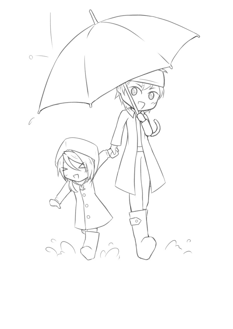 梅雨のお散歩、ぱしゃぱしゃ。ポニテはレインコートに格納