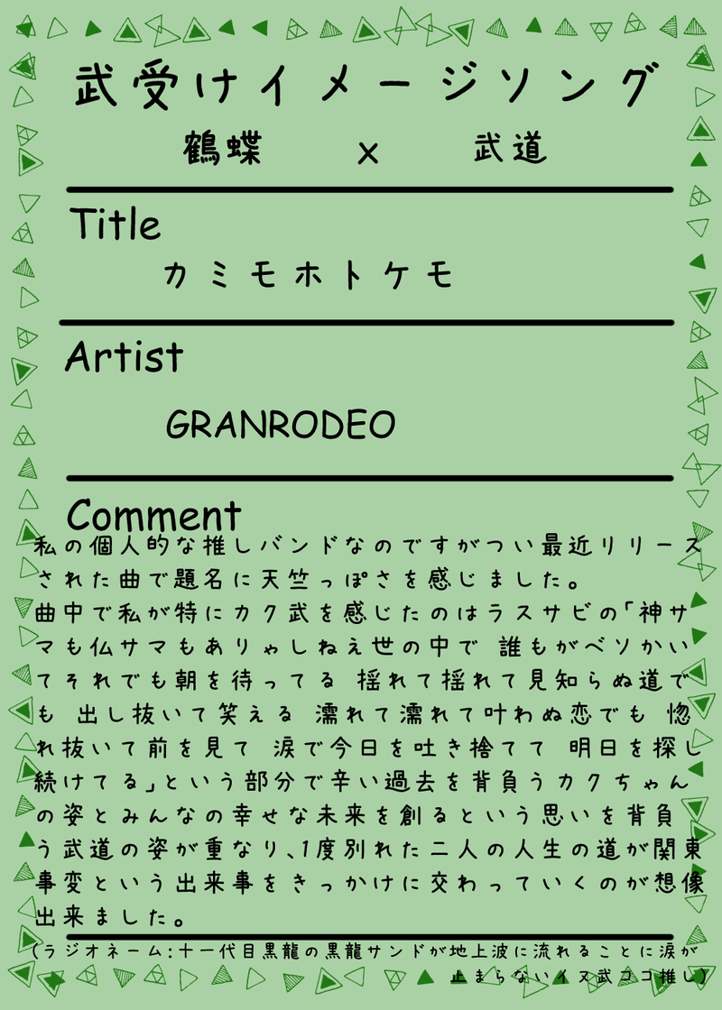 KKKK_0301☆quiet followDONESecond Season みぎたけラジオ 第壱回『カク武』でご紹介したイメージソングの解説をまとめました。ぜひ、聞きながら解説をご覧ください。 #みぎたけラジオ right-handedBambooRadio show all(+2 images) Tap to full screen (size:1000x1400).Repost is prohibited Let's send reactions! freqpopularsnackothersPayment processing Replies from the creator Follow creator you care about!☆quiet follow KKKK_0301DONEThird Season みぎたけラジオ 第弐回『真武』でご紹介したイメージソングの解説をまとめました。ぜひ、聞きながら解説をご覧ください。 9 KKKK_0301DONESecond Season みぎたけラジオ 第参回『真武』でご紹介したイメージソングの解説をまとめました。ぜひ、聞きながら解説をご覧ください。 2 KKKK_0301DONESecond Season みぎたけラジオ 第弐回『半武』でご紹介したイメージソングの解説をまとめました。ぜひ、聞きながら解説をご覧ください。 6 KKKK_0301DONESecond Season みぎたけラジオ 第壱回『カク武』でご紹介したイメージソングの解説をまとめました。ぜひ、聞きながら解説をご覧ください。 3 KKKK_0301DONE第参回『みつ武』みぎたけラジオでご紹介したイメージソングの解説をまとめました。ぜひ、聞きながら解説をご覧ください。 8 KKKK_0301DONE第弐回『ドラ武』みぎたけラジオでご紹介したイメージソングの解説をまとめました。ぜひ、聞きながら解説をご覧ください。 6 related works KKKK_0301DONESecond Season みぎたけラジオ 第弐回『半武』でご紹介したイメージソングの解説をまとめました。ぜひ、聞きながら解説をご覧ください。 6 KKKK_0301DONE第壱回『マイ武』みぎたけラジオでご紹介したイメージソングの解説をまとめました。ぜひ、聞きながら解説をご覧ください。スペース内でご紹介できなかったイメージソングも掲載しています!! 19 KKKK_0301DONE第零回 『武総受け』みぎたけラジオでご紹介したイメージソングの解説をまとめました。ぜひ、聴きながら見てみてください!3️⃣🎍ソングは歌詞の和訳付きです。 8 KKKK_0301DONE第弐回『ドラ武』みぎたけラジオでご紹介したイメージソングの解説をまとめました。ぜひ、聞きながら解説をご覧ください。 6 KKKK_0301DONEThird Season みぎたけラジオ 第弐回『真武』でご紹介したイメージソングの解説をまとめました。ぜひ、聞きながら解説をご覧ください。 9 KKKK_0301DONESecond Season みぎたけラジオ 第壱回『カク武』でご紹介したイメージソングの解説をまとめました。ぜひ、聞きながら解説をご覧ください。 3 KKKK_0301DONESecond Season みぎたけラジオ 第参回『真武』でご紹介したイメージソングの解説をまとめました。ぜひ、聞きながら解説をご覧ください。 2 KKKK_0301DONE第参回『みつ武』みぎたけラジオでご紹介したイメージソングの解説をまとめました。ぜひ、聞きながら解説をご覧ください。 8 recommended works KKKK_0301DONE第零回 『武総受け』みぎたけラジオでご紹介したイメージソングの解説をまとめました。ぜひ、聴きながら見てみてください!3️⃣🎍ソングは歌詞の和訳付きです。 8 KKKK_0301DONE第壱回『マイ武』みぎたけラジオでご紹介したイメージソングの解説をまとめました。ぜひ、聞きながら解説をご覧ください。スペース内でご紹介できなかったイメージソングも掲載しています!! 19 KKKK_0301DONE第弐回『ドラ武』みぎたけラジオでご紹介したイメージソングの解説をまとめました。ぜひ、聞きながら解説をご覧ください。 6 KKKK_0301DONE第参回『みつ武』みぎたけラジオでご紹介したイメージソングの解説をまとめました。ぜひ、聞きながら解説をご覧ください。 8 KKKK_0301DONESecond Season みぎたけラジオ 第壱回『カク武』でご紹介したイメージソングの解説をまとめました。ぜひ、聞きながら解説をご覧ください。 3 KKKK_0301DONESecond Season みぎたけラジオ 第弐回『半武』でご紹介したイメージソングの解説をまとめました。ぜひ、聞きながら解説をご覧ください。 6 KKKK_0301DONESecond Season みぎたけラジオ 第参回『真武』でご紹介したイメージソングの解説をまとめました。ぜひ、聞きながら解説をご覧ください。 2 KKKK_0301DONEThird Season みぎたけラジオ 第弐回『真武』でご紹介したイメージソングの解説をまとめました。ぜひ、聞きながら解説をご覧ください。 9 joshua_birdyDOODLE