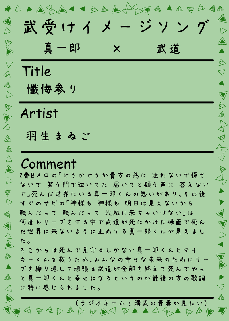 KKKK_0301☆quiet followDONEThird Season みぎたけラジオ 第弐回『真武』でご紹介したイメージソングの解説をまとめました。ぜひ、聞きながら解説をご覧ください。 #みぎたけラジオ right-handedBambooRadio show all(+8 images) Tap to full screen (size:1000x1400).Repost is prohibited Let's send reactions! freqpopularsnackothersPayment processing Replies from the creator Follow creator you care about!☆quiet follow KKKK_0301DONEThird Season みぎたけラジオ 第弐回『真武』でご紹介したイメージソングの解説をまとめました。ぜひ、聞きながら解説をご覧ください。 9 KKKK_0301DONESecond Season みぎたけラジオ 第参回『真武』でご紹介したイメージソングの解説をまとめました。ぜひ、聞きながら解説をご覧ください。 2 KKKK_0301DONESecond Season みぎたけラジオ 第弐回『半武』でご紹介したイメージソングの解説をまとめました。ぜひ、聞きながら解説をご覧ください。 6 KKKK_0301DONESecond Season みぎたけラジオ 第壱回『カク武』でご紹介したイメージソングの解説をまとめました。ぜひ、聞きながら解説をご覧ください。 3 KKKK_0301DONE第参回『みつ武』みぎたけラジオでご紹介したイメージソングの解説をまとめました。ぜひ、聞きながら解説をご覧ください。 8 KKKK_0301DONE第弐回『ドラ武』みぎたけラジオでご紹介したイメージソングの解説をまとめました。ぜひ、聞きながら解説をご覧ください。 6 related works KKKK_0301DONE第弐回『ドラ武』みぎたけラジオでご紹介したイメージソングの解説をまとめました。ぜひ、聞きながら解説をご覧ください。 6 KKKK_0301DONE第壱回『マイ武』みぎたけラジオでご紹介したイメージソングの解説をまとめました。ぜひ、聞きながら解説をご覧ください。スペース内でご紹介できなかったイメージソングも掲載しています!! 19 KKKK_0301DONEThird Season みぎたけラジオ 第弐回『真武』でご紹介したイメージソングの解説をまとめました。ぜひ、聞きながら解説をご覧ください。 9 KKKK_0301DONE第零回 『武総受け』みぎたけラジオでご紹介したイメージソングの解説をまとめました。ぜひ、聴きながら見てみてください!3️⃣🎍ソングは歌詞の和訳付きです。 8 KKKK_0301DONESecond Season みぎたけラジオ 第弐回『半武』でご紹介したイメージソングの解説をまとめました。ぜひ、聞きながら解説をご覧ください。 6 KKKK_0301DONE第参回『みつ武』みぎたけラジオでご紹介したイメージソングの解説をまとめました。ぜひ、聞きながら解説をご覧ください。 8 KKKK_0301DONESecond Season みぎたけラジオ 第参回『真武』でご紹介したイメージソングの解説をまとめました。ぜひ、聞きながら解説をご覧ください。 2 KKKK_0301DONESecond Season みぎたけラジオ 第壱回『カク武』でご紹介したイメージソングの解説をまとめました。ぜひ、聞きながら解説をご覧ください。 3 recommended works KKKK_0301DONE第零回 『武総受け』みぎたけラジオでご紹介したイメージソングの解説をまとめました。ぜひ、聴きながら見てみてください!3️⃣🎍ソングは歌詞の和訳付きです。 8 KKKK_0301DONE第壱回『マイ武』みぎたけラジオでご紹介したイメージソングの解説をまとめました。ぜひ、聞きながら解説をご覧ください。スペース内でご紹介できなかったイメージソングも掲載しています!! 19 KKKK_0301DONE第弐回『ドラ武』みぎたけラジオでご紹介したイメージソングの解説をまとめました。ぜひ、聞きながら解説をご覧ください。 6 KKKK_0301DONE第参回『みつ武』みぎたけラジオでご紹介したイメージソングの解説をまとめました。ぜひ、聞きながら解説をご覧ください。 8 KKKK_0301DONESecond Season みぎたけラジオ 第壱回『カク武』でご紹介したイメージソングの解説をまとめました。ぜひ、聞きながら解説をご覧ください。 3 KKKK_0301DONESecond Season みぎたけラジオ 第弐回『半武』でご紹介したイメージソングの解説をまとめました。ぜひ、聞きながら解説をご覧ください。 6 KKKK_0301DONESecond Season みぎたけラジオ 第参回『真武』でご紹介したイメージソングの解説をまとめました。ぜひ、聞きながら解説をご覧ください。 2 KKKK_0301DONEThird Season みぎたけラジオ 第弐回『真武』でご紹介したイメージソングの解説をまとめました。ぜひ、聞きながら解説をご覧ください。 9 市倉もちDONE付き合いたての🐍☀️このまだ敬語抜けてなかったり名前呼びに照れがあるひとときダイトゥキすることはする