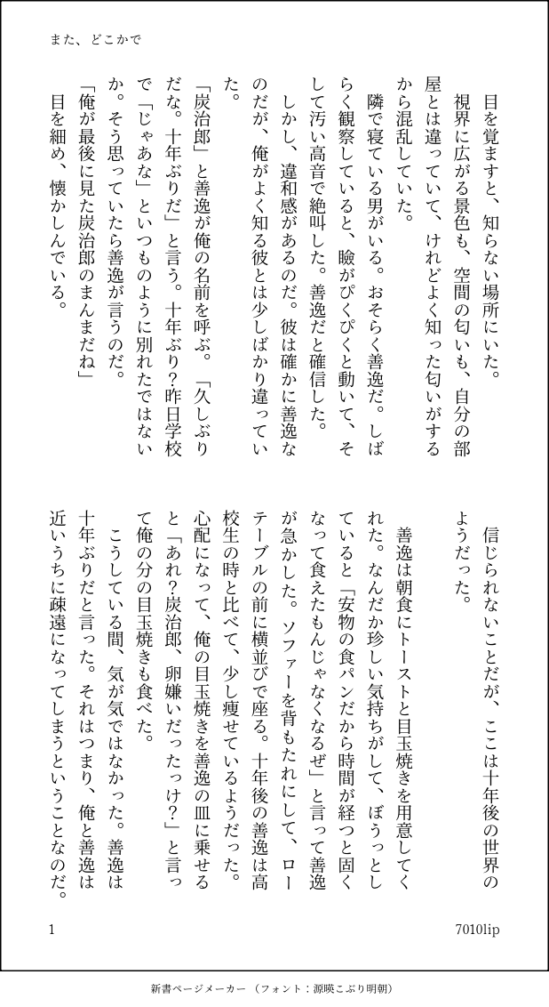 7010lip☆quiet followDONE「また、どこかで」炭善/小説/現パロです show all(+4 images) Tap to full screen (size:618x1132).Repost is prohibited Let's send reactions! freqpopularsnackothersPayment processing Replies from the creator Follow creator you care about!☆quiet follow 7010lipDOODLE 7010lipMEMO 2 7010lipDOODLE 7010lipDONE 8 7010lipDONE 12 7010lipDOODLE recommended works 碧海(あおい)DONE※現代で鬼を狩っているパロ寝不足我妻~のかっこいい絵を描きたかったけれどただの甘党こじらせ我妻になってしまった…CP要素そこまでいれてないんですが、炭善の女が描いてるのでタグつけておきます 5 碧海(あおい)DOODLE※柱if善逸昨日炭さんと一緒に上がってると思ったら上がってなかったので上げ炭善前提軸の柱です おむさわPROGRESSこういう漫画を描いています。tnzn+nz mnm_373DONEオメガバース炭善ちゃん③ きなこもちDOODLE大好きな炭善☺️ 3 螺子TRAININGメiリiークiリiスiマiス!炭善!何とか今日中に描けたぞ…いろいろ気になるけど、まぁ…今日あげることに意義があるのだ!と言い訳しつつ… 螺子DONE(2021223)「222」の日。全く間に合いませんでしたが。猫の日と忍者の日を欲張ってみました。私だけが楽しい感じになりました。個人的嗜好により、炭には寸鉄、善には鏢刀を持ってもらいました。私だけが楽しい!!!!!!2枚目は加工なしです。大差ないです。 2 九重 ゆめTRAINING 暁ぼたんPAST今まで描いた空です 8