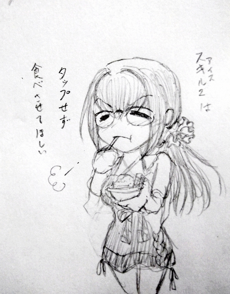 水着スカディさんのスキル2でタップすると、アイス早食いさせてしまうのが申し訳無かった。終わったらゆっくり食べてね。