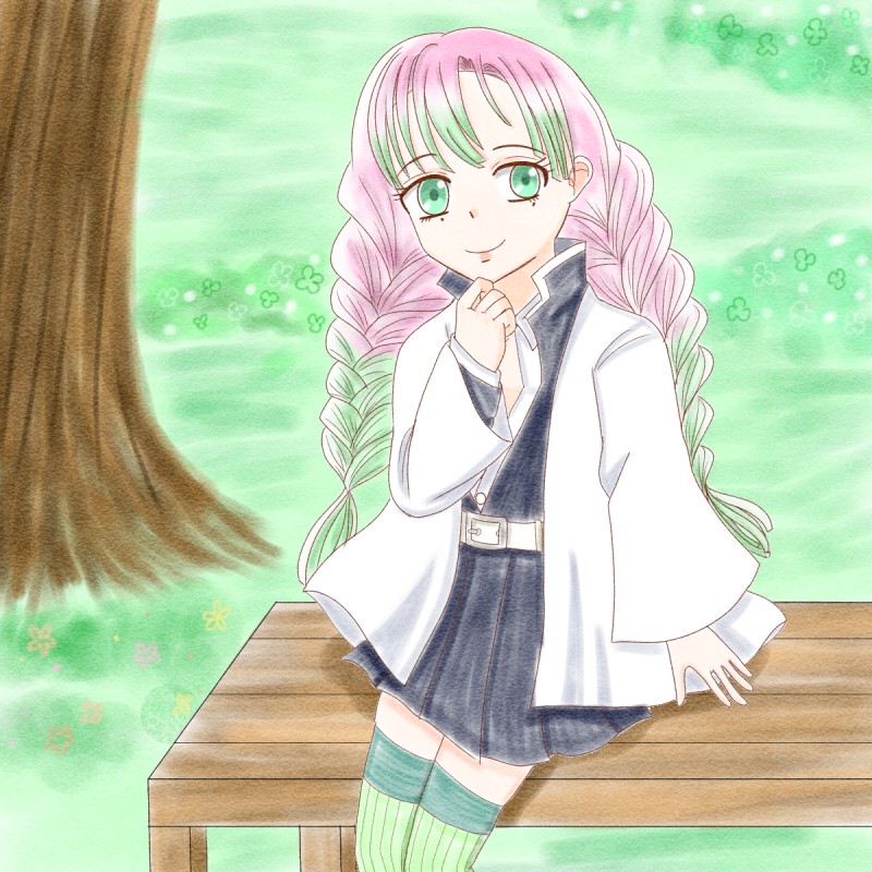 蜜璃ちゃん描いてみた(色はパステルアートの練習)