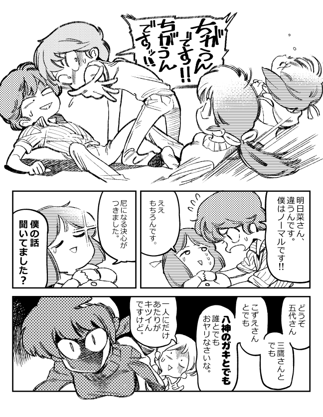 七奈★☆quiet followTRAININGこの色ガキうる星やつらの場合、私はラムちゃんのことが本気で好きなので腐ではあまり登場させたくないけど、響子さんは嫌いなのでバンバン出します。むしろ絡ませた方が面白くなる。 Tap to full screen (size:648x837).Repost is prohibited 七奈★TRAINING恋敵のスペックがどれだけ高かろうと一緒に住んでる時点で五代くんが優位なのだ。それはそうと、五代くんがラブホで失敗した原因が勃たなかったのか、それとも中折れだったのか。未だに議論されてて「この漫画ホントに愛されてるんだなぁ」と感心した、私は前者だと思っているが。どーでもイイけど今「ツルモク独身寮」を読んでいるのでメッチャ影響受ける。めぞん・ツルモク・東京大学物語、このへんの漫画大好き。 七奈★TRAINING五代三鷹か 三鷹五代か別に右も左も決めてない。再三言うが左右固定にする事によってあるであろう可能性を半分捨てるのは勿体ない、と年を重ねて思うようになった。(あくまで自分の話で人様が描いたものは別です)さしあたって、そういうCP表記は「三五三」と言うのだと、この間お優しい方から偶然教えていただいた。恩にきります。それはそうとこの「あーん」の話はアニメではカットされちゃって残念。 七奈★TRAINING惣一朗さん(犬)五代くんが三鷹さんの犬恐怖症を響子さんにバラさなかったのは、武士の情けじゃなくて、犬好きの人にそういう事を言うと悲しむから、だと思いたい。全ては響子さんのため。そんな三鷹さんはそれを克服しちゃうんだからすごいよね。大の男が子犬に怯えながら暮らしてた日々を想像すると可愛いすぎなんだが。 七奈★TRAININGやっぱり恥ずかしい でも伝えたかったのでイイ 七奈★TRAINING2人は入院中三鷹さんは入院する前からちょくちょく五代くんのお見舞いに来てて、数えてみたら3回も来てた。実に微笑ましい。そんで描いてから気付いたけど三鷹さんは別に故意に骨折したわけでは無いと。骨折したけどこれで入院したら音無さんに看病してもらえるじゃんラッキー、程度の事だと思う。ともあれスポーツマンのする事じゃないよね。 七奈★TRAINING自分だけ特別だと思ったら大間違いだぞ。アニメ18話の2人の上着が可愛い。結果としてマフラーは全員に編まれていたわけだが、道中男2人が色違いのマフラーをして歩いてる姿は何とも可愛いじゃないか。そしてこの回も音無竜之介さん作監だった。この方のはハズレが無いな。「音無」「竜之介」というPNが留美子作品を描くべくして付けた感じがして羨ましい。そして私のめぞん熱がまた上がってきたので当分描き続ける。 recommended works nakanakanakano_DONE 2 hisayoshi_TRAININGファンアート atmgpd93DOODLECoC【VOID】PC/PL早咲 望/コトリさん明希/にかさん日高 暁/立花紫月さんラウム/はむちゃ DS_JennDONE¿Por qué no? 🤨 Myamata_noMOURNINGカード風のイラスト描いたけど没です CcTigerKingDOODLE💜のパイスー💛の妄想後は💜💛のパイスー🔞も描きます(時間あれば🤯 まちばちゃDOODLEうちの子ラクガキまとめ 6 310(さとう)MEMO250110さすてなぶる 3 wmatilda_DOODLEブルスカに上げた燈矢のラクガキら🩵🤍🩵 5