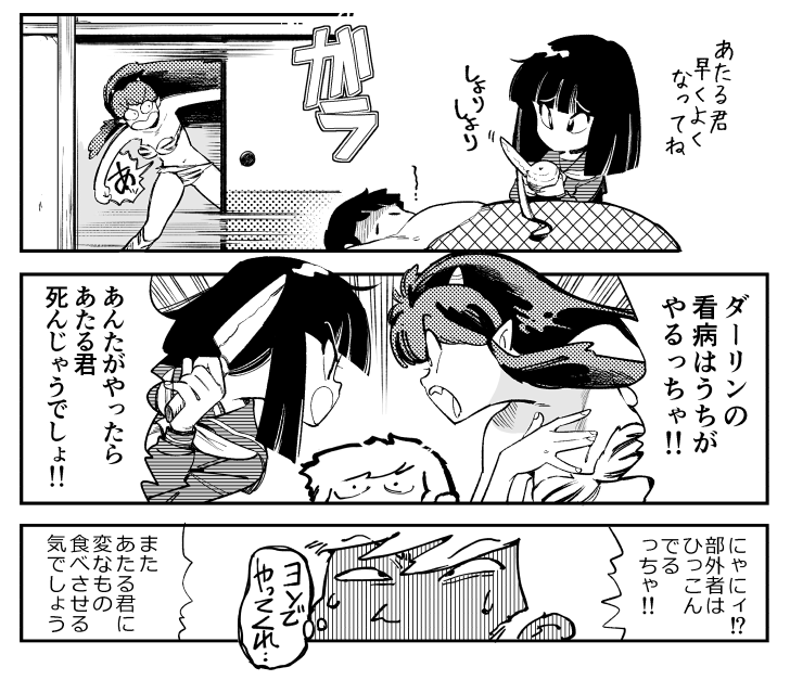 七奈★☆quiet followTRAINING新作第六話ラムちゃんは、風邪のあたるを放っといて海王星に行っていたのか(初期だから)新作についてはあまり詮索しないつもりだけど、ところどころキャラがガニ股になってるのがすごく気になる。深い意味は無いんだろうけど。昭和版のなごりってことで。 Tap to full screen (size:728x639).Repost is prohibited 七奈★TRAINING恋敵のスペックがどれだけ高かろうと一緒に住んでる時点で五代くんが優位なのだ。それはそうと、五代くんがラブホで失敗した原因が勃たなかったのか、それとも中折れだったのか。未だに議論されてて「この漫画ホントに愛されてるんだなぁ」と感心した、私は前者だと思っているが。どーでもイイけど今「ツルモク独身寮」を読んでいるのでメッチャ影響受ける。めぞん・ツルモク・東京大学物語、このへんの漫画大好き。 七奈★TRAINING五代三鷹か 三鷹五代か別に右も左も決めてない。再三言うが左右固定にする事によってあるであろう可能性を半分捨てるのは勿体ない、と年を重ねて思うようになった。(あくまで自分の話で人様が描いたものは別です)さしあたって、そういうCP表記は「三五三」と言うのだと、この間お優しい方から偶然教えていただいた。恩にきります。それはそうとこの「あーん」の話はアニメではカットされちゃって残念。 七奈★TRAINING惣一朗さん(犬)五代くんが三鷹さんの犬恐怖症を響子さんにバラさなかったのは、武士の情けじゃなくて、犬好きの人にそういう事を言うと悲しむから、だと思いたい。全ては響子さんのため。そんな三鷹さんはそれを克服しちゃうんだからすごいよね。大の男が子犬に怯えながら暮らしてた日々を想像すると可愛いすぎなんだが。 七奈★TRAININGやっぱり恥ずかしい でも伝えたかったのでイイ 七奈★TRAINING2人は入院中三鷹さんは入院する前からちょくちょく五代くんのお見舞いに来てて、数えてみたら3回も来てた。実に微笑ましい。そんで描いてから気付いたけど三鷹さんは別に故意に骨折したわけでは無いと。骨折したけどこれで入院したら音無さんに看病してもらえるじゃんラッキー、程度の事だと思う。ともあれスポーツマンのする事じゃないよね。 七奈★TRAINING自分だけ特別だと思ったら大間違いだぞ。アニメ18話の2人の上着が可愛い。結果としてマフラーは全員に編まれていたわけだが、道中男2人が色違いのマフラーをして歩いてる姿は何とも可愛いじゃないか。そしてこの回も音無竜之介さん作監だった。この方のはハズレが無いな。「音無」「竜之介」というPNが留美子作品を描くべくして付けた感じがして羨ましい。そして私のめぞん熱がまた上がってきたので当分描き続ける。