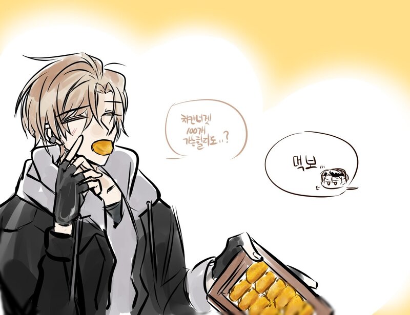 치킨너겟이 너무 먹고 싶어서 자캐에게 먹여주기.