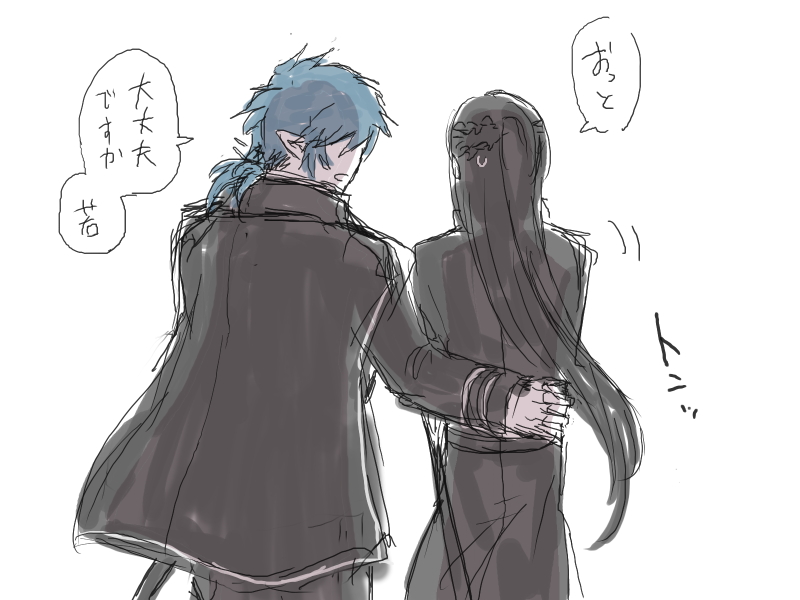 うっかり酒が入るなどしてよろけたヘレボルスと咄嗟に支えるコランバイン。