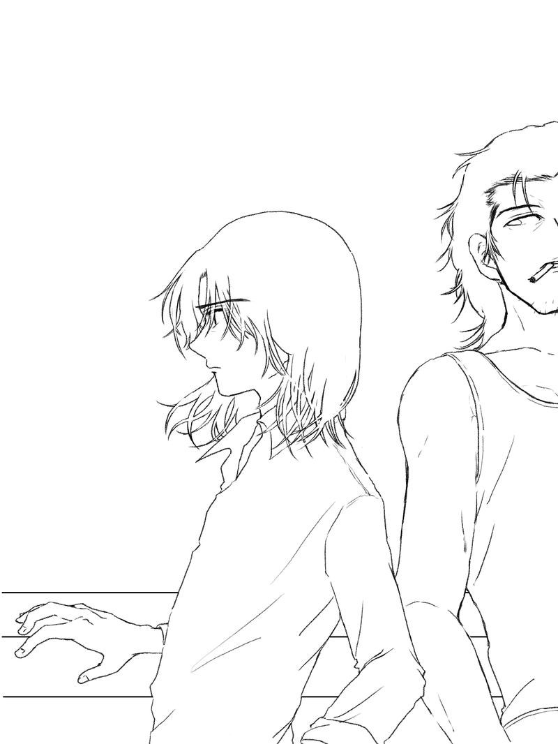 鉄三みたいなのを描きたいんだけど、背景夜の海か、テールランプ的なものか悩んでいる。