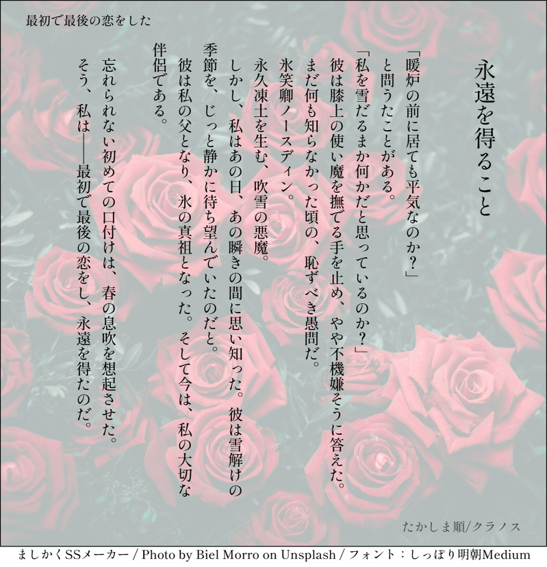 良い眼鏡(停) クラノス、フククワのネタ帳からSS化したものをここにあげたり、文庫の作業場だったり。他にもいろいろ。その他CPは一つを残し削除しました。 ☆quiet follow Yell with Emoji Tap the Emoji to send POIPOI 34