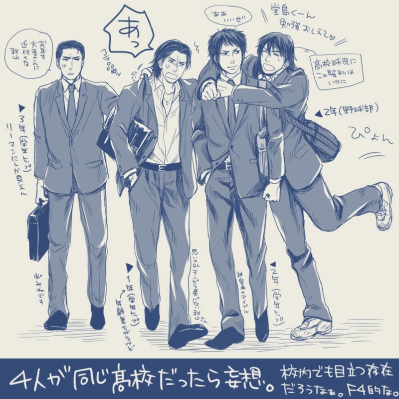ミナト☆quiet followPAST龍如同年代四人組。いつも一緒にいるんだけど、大吾を中心に集まっているので仲良し四人組という訳ではない人達。大吾に付きまとってる秋山という虫が気に入らない峯と、放課後デートを邪魔された上に大吾に慣れ慣れしい品田がうざったい秋山さんと、何も考えてない品田。(十年前の絵) Tap to full screen (size:1431x1430).Repost is prohibited Let's send reactions! freqpopularsnackothersPayment processing Replies from the creator Follow creator you care about!☆quiet follow ミナトDOODLE斎左と左之。最後のはトリミング間違えて保存してしまって周りの左之が消えてしまったやつ供養。 3 ミナトDOODLE斎左れんしゅうとか 5 ミナトPAST秋大。最後だけ品大。(十年前の絵) 5 ミナトPAST龍如同年代四人組。いつも一緒にいるんだけど、大吾を中心に集まっているので仲良し四人組という訳ではない人達。大吾に付きまとってる秋山という虫が気に入らない峯と、放課後デートを邪魔された上に大吾に慣れ慣れしい品田がうざったい秋山さんと、何も考えてない品田。(十年前の絵) ミナトPAST龍維新の妄想集。キャラデザとか配役とかの発表前後に好き勝手描いたものです。(十年前の絵) 5 ミナトPAST秋大。秋山さんが大吾を脱がしていくやつ。(十年前の絵) 3