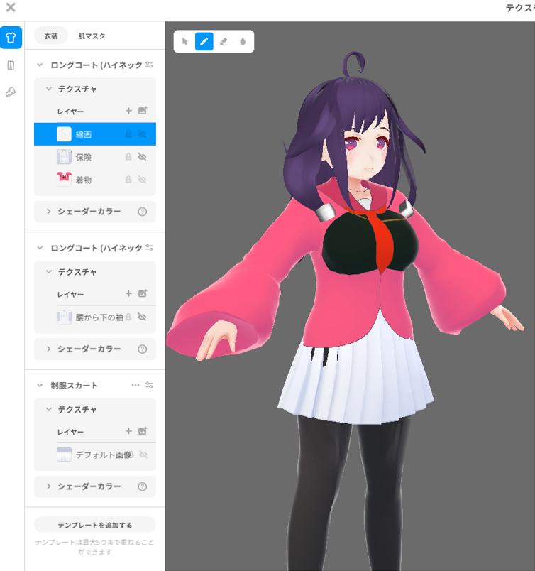 K@ケイアット☆quiet followPROGRESS以前作ってた大鯨ちゃんを龍鳳に改装できないか模索中...エールウィンと同時進行で作ってますこのパーツだけだと腰から下にかけての振り袖?が短すぎるので、ロングコートを使って再現してみようかなどうしても浮き出てくる部分は前みたいに下から削ってみる #VRoid VRoid #艦これ navalBattle #大鯨 greatWhale #龍鳳 dragonPhoenix show all(+3 images) Tap to full screen (size:754x804).Repost is prohibited Let's send reactions! freqpopularsnackothersPayment processing Replies from the creator Follow creator you care about!☆quiet follow K@ケイアットDOODLE長年使ってたPCを新しく買い替えてたら大分こっちをご無沙汰してましたひっそり加工して遊んでたたさとこい K@ケイアットPROGRESSオリキャラじゃないですが、こっちも同時進行で作ってるとあるキャラです何体掛け持ちしてるんだろう… 2 K@ケイアットPROGRESS以前作ってた大鯨ちゃんを龍鳳に改装できないか模索中...エールウィンと同時進行で作ってますこのパーツだけだと腰から下にかけての振り袖?が短すぎるので、ロングコートを使って再現してみようかなどうしても浮き出てくる部分は前みたいに下から削ってみる 4 K@ケイアットPROGRESS次のキャラはアズールレーンからエールウィンを作ろうかと思ってます帽子作るの難しいね。思ったとおりの形にならない K@ケイアットDONEようやく迅鯨が一通り納得できる形になったので、これにて完成記念撮影に大鯨ちゃんも混ざって貰いました次は誰作ろう… 4 K@ケイアットPROGRESS紐がセーラー服にのめり込んじゃう対処として、結局新しい衣装レイヤー(パーカー)で作り直して、セーラー服と上着の上に極力行くように力技で解決しました計画も無しにやるとこんな遠回しになっちゃうんだなと思い知らされる事になりました、まる 4 related works take_take_OPPROGRESS女子よき…!!!お洋服お借りしてます#VRoid thukikage26DOODLEローリトさんのスカートの中、下着は見せたくないけどファンタジー感を維持するためにスパッツも履かせたくないので落としどころを模索している。 take_take_OPPROGRESS蚕蛾触覚も良いですね#VRoid あんどういろはTRAINING色々思うところは当然あるのですが、VRoidStudioでの途中経過の確認のための投稿をさせてもらいます。髪の毛の生やし方などは以前よりは少し掴めてきた気がしています。もう少し手を入れたいです。画像にある自分で描いた漫画の女子を3Dにするつもり作っています。あくまでも自分の場合はですが、うちの子というよりは、キャラクターがないとただただ女の子というのも作れそうになくて。 3 take_take_OPPROGRESS本家が古すぎる (:D)| ̄|_#VRoid kzgr_P_maoPROGRESSフィーちゃんのVRoidをコネコネしていた。今日は終わり〜と終了したいんだけどまくたん固まってしまってな……スマヒョカメラで撮る。 take_take_OPPROGRESS比較用~~あとちょっと髪の毛はねさせたら完璧なきがする!#VRoid take_take_OPPROGRESS男子二人目~この髪型難しいがすぎる#VRoid 2 take_take_OPPROGRESSおショタもつくれるVroidさん凄い…#VRoid