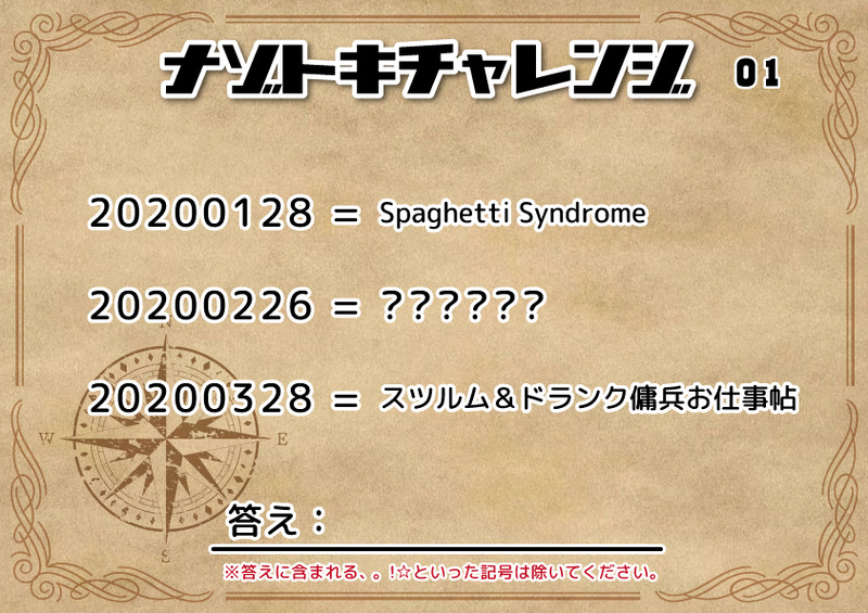 Tsunahana_g6☆quiet followMOURNINGグラブル謎解きクイズ問題一覧(最後に解答付き) show all(+20 images) Tap to full screen (size:842x595).Repost is prohibited Let's send reactions! freqpopularsnackothersPayment processing Replies from the creator Follow creator you care about!☆quiet follow Tsunahana_g6INFOグラブル謎解きクイズのネットプリント番号です。パスワードはグラブル謎解きクイズサイトに記載の「合言葉」を入力してください。 Tsunahana_g6SPOILER繋いだ手は離さない!2の謎解きの問題&答えです。 24 Tsunahana_g6MOURNING書き込みボードにてご要望がありましたのでイベントマップ全体を公開いたします。(無断転載・使用不可)改めましてご来場ありがとうございました! 2 Tsunahana_g6INFOグラブル謎解きクイズの答えとネットプリント番号です。パスワードはグラブル謎解きクイズサイトに記載の「合言葉」を入力してください。 12 Tsunahana_g6MOURNINGグラブル謎解きクイズ問題一覧(最後に解答付き) 21 Tsunahana_g6SPOILER recommended works 小SylvieDOODLE火焰戎装番外 7 AritoyaDOODLE カモミールDONEエンジェル・デビル・インプロパーのHO天使!ウル!天才ディスプレイは柳さんに作っていただきました ありがとう〜っ!!!🫶 3 ましろ⚙SPOILERCoC「鬱肉漏脯ゆーえんみー」現行未通過×肉屋のディスプレイと卓ログ 8 yone_houjityaSPOILERNapFrappe 現行未通過×PW=yes 4 スガロ@fan boxDOODLE【pkmn】ジャ◯ーダ×サ◯シ🐍年なので! 4 POI11034968PROGRESS勝手な妄想で描いたジノマロですおそらく清書では内容少し変わると思います sora_quu_vDOODLE描き初めえんぐみ新しいペンDLしたので試し描きしたけどみんな笑ってない auk_pDOODLE🐴❄️1️⃣