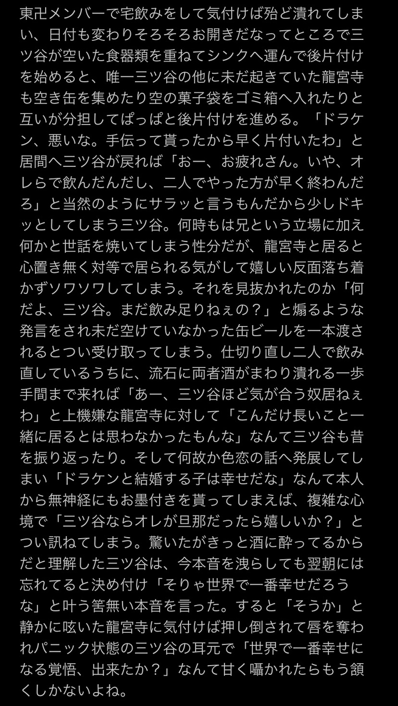 nozoko_☆quiet followMOURNINGフォロワさんへ送り付けたドラみつみたいなものあまりに解像度低過ぎて無事死亡😇 #ドラみつ Doramitsu Tap to full screen (size:828x1468).Repost is prohibited Let's send reactions! freqpopularsnackothersPayment processing Replies from the creator Follow creator you care about!☆quiet follow nozoko_MOURNINGフォロワさんへ送り付けたドラみつみたいなものあまりに解像度低過ぎて無事死亡😇 nozoko_TRAININGお題から派生したSSのイヌココ幸せに臆病なココをでっかい愛で包んでくれイヌピーもっとスラスラ書けるようになりたい 6 nozoko_MAIKING冬っぽいお話が書きたくて書いたけど、本当にただの日常になってしまった…続き書きたいけど、エロに持ってくか、ほのぼので終わるか悩ましいですね🤔🤔 4 nozoko_TRAINING先日挑戦したワンライのイヌココお題は『学校』 8 nozoko_MAIKING蘭ココの書きたい所だけ😂最近流行ってるらしいですね💓続きは気が向いたら! 2 related works いづきPROGRESS引き続き武のターン。このあとマイからめろめろ3倍返しされるやつ。こっそりいちゃつくドみも夏の風物詩。(マイ武+ドラみつ) alpaquerqueDOODLE2023年みつやくんお誕生日おめめめと〜のらくがき 2 geten3getenDONE梵ド×カタギみつ 2 みろさきDONEドラケンのほしいもの の続き R18ドの誕生日の夜 ホテル行って無事初夜一回戦終わった後のお話しですパス18歳以上ですか?yes/no 8 プリンごちょーDONE友達歴が長すぎて恋人らしいことしたら恥ずかしくてたまんね〜あまずっぺ〜やつ〜〜!!! 帳さんDOODLE aanekoooDOODLEみつドラ(みつ)🔞挿入はみつ→ドラだけですがドラみつ前提。ドラ右の可能性を広げる挑戦に挑んだけど結局🍯の受け力の方が強かった…惨敗です…何でも許せる人のみ見てください… 3 Hana_Sakuhin_MOURNINGドラみつ。未完結です!バイク屋イヌピーも出ます!🐶いろいろとご注意ください。「三ツ谷って恋人いるのか?」とヌピに聞かれた龍宮寺が狼狽える話です。 4607 tiqki ▶MENU続き(Part2)⚠完全に私の語りで草。 813 recommended works ica91kkPASTイヌココ アジト 0115_wingMOURNING初描きドラみつ、、、うっっっ、ドラみつちゃん可愛い、、、 れい🖋DONE1円でトラさんに預けようかと思いましたが、手間だけかけるのはお店に悪いので、新刊として出すのはやめます。で、最後までUPしました。こういうアホな話書いてるの楽しいので、イチャラブコンテンツ作りたい。 18 そっくりソクちゃんDOODLE恋愛する蘭ココは私が喜びます Hana_Sakuhin_MOURNINGドラみつ。(イヌココっぽい)(マイ→みつはあくまで親愛です)謎軸!マイキー、イヌピー、ココもいます!逆ナンされた龍宮寺と場をかき乱す元総長と巻き込まれる三ツ谷&イヌココ。 2859 プリンごちょーDONEピュアピュアなドみ 誠太郎DOODLEイヌココで鼻血2人で喧嘩して鼻血出るまでやってほしいよね🫶🏻そのあと仲直りして 2 hanazonotokinotPROGRESS黒龍オンリー新刊原稿もあと少し‼️毎日賢者タイムです。御奉仕エロノイ︎💕 h a y l e y 🎐DOODLE💌Password is my birthday which can be seen on my profile after following.❕In this order: DDMM💌パスワードはXプロフィール欄にある誕生日4 桁です(私の垢をフォローすると表示されます)❕ DDMM