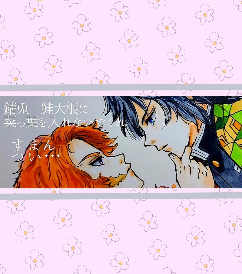 ☓☓☓☆quiet followPASTデータの底から出て来た代物。義勇さんが思わぬ方向に崩れちゃって焦ってた頃のものだと思う。義「錆兎、鮭大根に菜っ葉を入れないでくれ」錆「すまん、つい…」 #鬼滅の刃 DemonSlayer #錆兎 #冨岡義勇 yoshiyukiTomioka #水柱 waterColumn #錆義 #コピックイラスト copicIllustration #アナログイラスト analogIllustration Tap to full screen (size:1500x1700).Repost is prohibited Let's send reactions! freqpopularsnackothersPayment processing Replies from the creator Follow creator you care about!☆quiet follow ☓☓☓PAST錆義。 2 ☓☓☓PAST錆兎〈生存if〉。 ☓☓☓PASTショタ義勇。13歳。 ☓☓☓PASTさねぎゆ。…ではなく、単に実弥と義勇さん。 ☓☓☓PAST錆 ☓☓☓PAST過去漫画の(義勇さんに対して)悩める錆兎。お気に入りの一コマ。 related works ばるふぁるくDONEヒロアカ×鬼滅の刃で推しの服を取り替えてみた! @twst4192stDONEバレンタイン〜 ユカスケDOODLEねずこちゃん(о´∀`о) タンヤオドライチMAIKINGむざんさま スピカrDONE伊黒さんと蜜璃ちゃん仲良くて可愛いです😍この先もっと絡みが見れそうでドキドキ Yukari_KurenaiMAIKING♡Happy Valentine's Day♡②#宇善#さねねず 2 @twst4192stDONEバレンタイン〜明るくした! ちかうちTMP-SAVE #鬼滅の刃蜜璃ちゃんのつもり ふみか🍊DONE🍨