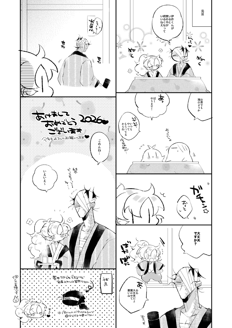 ゆyゆ☆こそフォロらくがき明けたってレベルじゃないですが明けましておめでとうございます🎍🌅年末はぬーどるストッパー雑渡さんと過ごしました今年ものんびりペースですが、どうぞよろしくお願いします タップで全画面(原寸:1504x2124)無断転載禁止 リアクションをたくさん送って応援しよう! よく使う人気おやつその他支払処理中 作者からのリプライ 気になる人をどんどんフォローしよう!☆こそフォロ ゆyゆらくがき明けたってレベルじゃないですが明けましておめでとうございます🎍🌅年末はぬーどるストッパー雑渡さんと過ごしました今年ものんびりペースですが、どうぞよろしくお願いします ゆyゆらくがき誰かが誰かのサンタさん今年は少年期の雑渡くんと伊作さんを1番描いた気がしたので、最後もこの2人のお話で2025年もお疲れ様でした。絵を見て下さった方、絵文字を送ってくださった方、メッセージを送って下さった方、本当にありがとうございます。とても励みになっています。来年も変わらぬペースで描き続けていきたいと思っていますので、どうぞよろしくお願いいたします。良いお年をお迎えください🌟 5 ゆyゆらくがき夏に描きかけて止まってたものを仕上げてみました夏の思い出はなんぼあってもいいですからね🌻 2 ゆyゆらくがきあまあまハロウィン※女体化・センシチブな絵なので背後にご注意ください 2 ゆyゆらくがきお風呂にまつわるエトセトラ前回アップした漫画のオマケのような感じですお年頃だからしょうがない 3 ゆyゆらくがき暑がりだったら可愛くていいなという妄想汗かいててもそんなの組頭は気にしない!(愛) 2