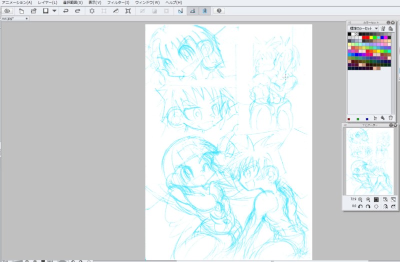 読切漫画の本格下描き(青)。