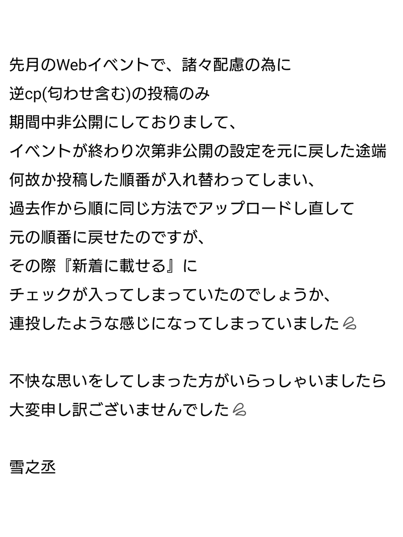 ゆきのじょ☆quiet followINFO文字が入り切らなかったので画像で失礼します🙏💦 Tap to full screen (size:1536x2048).Repost is prohibited Let's send reactions! freqpopularsnackothersPayment processing Replies from the creator Follow creator you care about!☆quiet follow ゆきのじょINFOさねぎゆ『はつぴゐゑんど』第8話(全10ページ)18歳以上の方のみ(フォロワー限定)よろしくお願い致します🙏🏻 10 ゆきのじょMOURNING2025年7月13日 東京ビッグサイト風が織りなす水模様新刊『はつぴゐゑんど』のラストシーンの第2案(逸脱ルート)です。画像1枚目のような理由で当初のルートに戻したのが今回本に収録した方になります。でもこれはこれでマッドな感じで好きなのでこちらで公開しようと思いました🥹良かったらどちらがお好みか是非教えて下さい✨pass→巻末のあとがきにある曲名4文字 4 ゆきのじょPROGRESS7月新刊(シリアス余生さねぎゆ)の一部です自分史上一番ヱロスになったので…🥹💚💙ところで四十八手の『首引き恋慕』ってめちゃくちゃ余生さねぎゆに合ってませんか…?🥺✨(このさねちゃは手ぬぐいだけじゃ飽き足らずその辺にあった縄も使っちゃってますが…よっぽどぎゆと繋がってたいのでしょう…🤦♀️)⚠縄表現有り※フォロ限です🙏🏻pass→カプ名を小文字8文字で 3 ゆきのじょDOODLE『しなずがわせんせいととみおかせんせい』SCENE:24「そうだ、○○所に行こう」映ってないですが最中なので背後注意です~! 3 ゆきのじょDONE『しなずがわせんせいととみおかせんせい』SCENE:18「いじらしくっていとおしい」※さねぎゆ⚠受の🧂吹き(複数回)⚠攻への口淫⚠🔞につきフォロ限&パス制にしております🙏🏻(パスは本作品のカプ名を小文字のローマ字で8文字になります)⚠閲覧は成人の方のみでよろしくお願い致します 4 ゆきのじょDONE『しなずがわせんせいととみおかせんせい』SCENE:17「ぎゆうのよしよしなでなで大作戦」一コマしか🍌出てないけどR-18につきフォロ限&パス制にしております~🙏🏻パスはさねぎゆをローマ字の小文字(8ケタ)で! 2 recommended works capiDOODLE皆本金吾 きり_opMEMO【腐】現パロール🐯👒別垢で描いてたやつも一旦まとめました 11 りょうかTRAININGさねぎゆ(´ω`)練習練習_:( _ ́ཫ`):_レイヤーを諦めたなんて言えない🙊それ塗ったらあかんやつや!って毎回後から気付くのどうにかなりませんかね。 tsukiko1stDOODLE好きと言ってもらったキャラをその人の為に落書きするタグのやつ。敢えて現パロで統一しました😉現パロではアルカンメンバーも家族になってます👍 6 gomachiTRAINING練習絵 色々追加 6 rrrrrzzyTBOkyMOURNING現パロ、鯉(大学生)×月(司書)、お付き合いしてる絵に起こせるか分かんないのでネタをとりあえず供養いたします😇なので中途半端に終わります。 1467 ポイピクミッシェルさんDONE月イチ企画の第六弾です。夜道を歩く二人(一人?)のお話です。 2989 kame2kmtDONE #さねぎゆ版ワンドロワンライ「煩悩」僧侶🍃×尼僧🌊古寺で煩悩に吸い寄せられる鬼をおびき寄せようとして…的な 3 コウノセイヤ@ダポの絵置き場DOODLE転生パロ。そらまぁ、普通に考えたら…ねぇ?