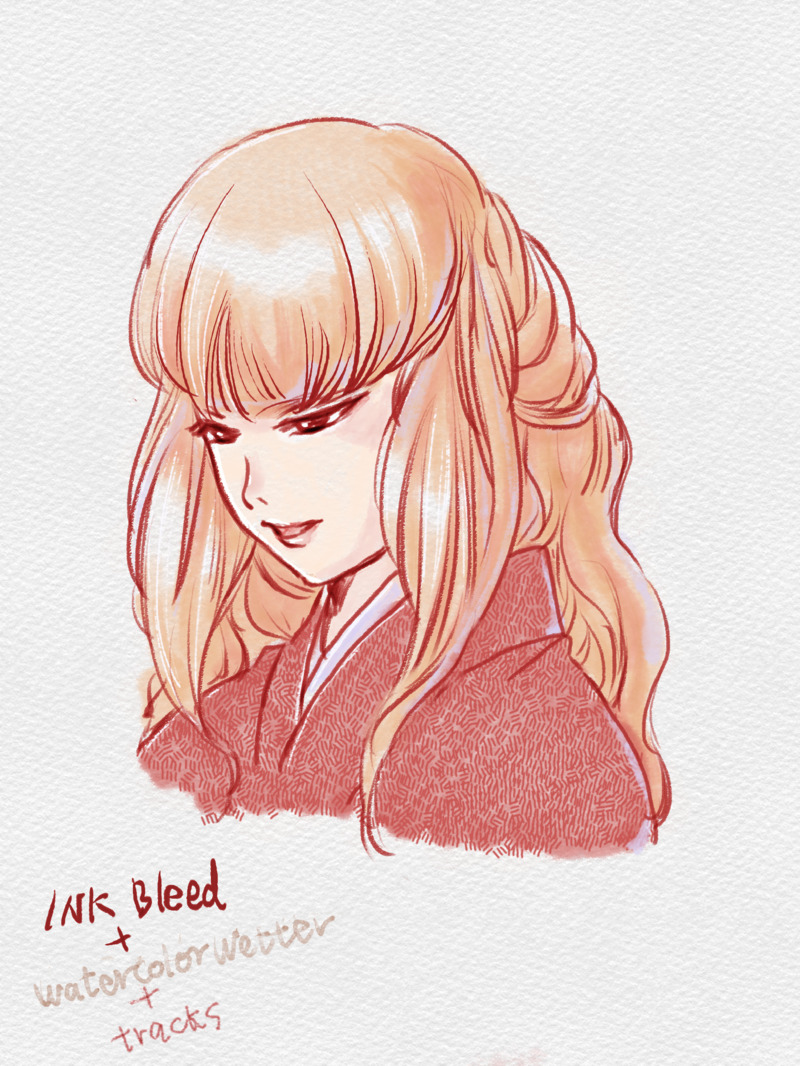 Artset練習中。線画inkbleed、着彩watercolorwetter、着物模様tracks。