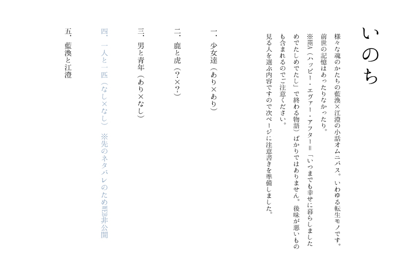 読む人を選ぶ内容なので公開を悩みましたが、せっかくのお祭りと思い数日、第4話以外を公開させていただきます。