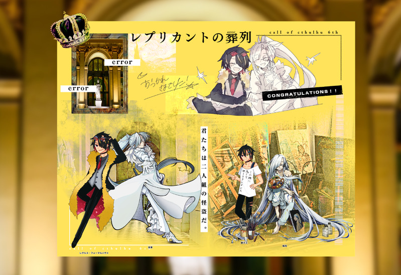 akagi9696☆quiet followDOODLE【CoC】レプリカントの葬列 HO2:贋作師ネタバレ無し、使用した差分お部屋と紙月/月華の通常と戦闘差分 show all(+16 images) Tap to full screen (size:2635x1807).Repost is prohibited Let's send reactions! freqpopularsnackothersPayment processing Replies from the creator Follow creator you care about!☆quiet follow akagi9696SPOILER【CoC】レプリカントの葬列(現行·未通過××)HO2:贋作師 紙月/月華ほんまに全部ネタバレ。シナリオ最後まで使った差分達と使わんかった差分達。 22 akagi9696DOODLE【CoC】レプリカントの葬列 HO2:贋作師ネタバレ無し、使用した差分お部屋と紙月/月華の通常と戦闘差分 17 akagi9696SPOILER【CoC】レプリカントの葬列(未通過×)紙月(月華)の落描き。あの頃。 2 akagi9696DOODLECoCのパイあまシナリオで使った蛇魅差分。女体化、イキ差分とかある。尊厳?ないよ。 9 akagi9696DOODLE俺が見たい屋敷自己満足系の地下倉庫。R系、RG系の15〜18。相手は全てモブか自宅内。地雷配慮とかミリもせんのでお願いし候。■更新型の予定passは蒼真垢のプロフに載せてます。 2 akagi9696DOODLE本当にただの落描きだけど、不哥知組なので同卓したフォロワー以外はまだダメ🤫 recommended works sfea1aDOODLEオタク君張り切り週間1 3 halDOODLEにんたまおえかき 250224最終更新 15 trpg_kabeuchiDOODLEキルキルイキル通過後の絵ネタバレだらけだからげんみ❌ Do not Repost・東龍INFO【45話完結しました……が、番外編を何話か更新予定】魔物を倒しながら小説コンテストへの応募を目指す少年のRPGです(?)。※漫画でも小説でもない、独特な形態ですノベルゲーム風と言いますか。→https://tapnovel.com/stories/24978画像は作中の様子。 44 かずや とものりPROGRESSAは数年前に異世界に飛ばされ、勇者として最深部まで乗り込んだけれど、最深部には誰もいなくて水溜まりが1つその水溜まりは写った人の悪意が反映されて魔物として現れる呪いで、そもそも最深部に好奇心や偽善な気持ちで入り込まなければ魔王も悪も存在しない世界だったってオチ。絶望して命を断とうとしたんだけれど、それを止めたのが顕現も出来ない程度の地縛霊であったB ループ3回目 2305 @yuuno0MAIKING赤いガンダムくんSDガンダムだとだいぶ描きやすい部類と思いはじめてる……いや創傑伝やワーヒーに比べたら描きやすいってだけですハイ YAKINIKUparty00SPOILER花ヶ丘げんみ❌自陣⭕️1日目関連のらくがき。 紫乃(しの)CAN’T MAKEこの先どうしたかったのか。それはもうさっぱりわからないけどファイル整理のために出してみるめちゃめちゃ書きかけ現パロB記(にしたかったんだろうな) 6517 R18_carlyDONE🚬🚬