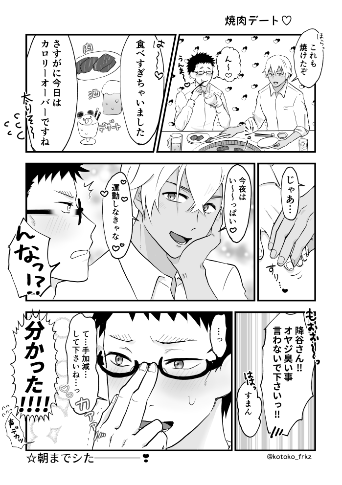 琴子💛💚☆quiet followDOODLE焼き肉デートをする降風💛🔞🍖💚ふぉろわさんに差し上げるために描いたものですが、焼き肉の日なので記念に上げさせて下さい🙇♀️ Tap to full screen (size:699x992).Repost is prohibited Let's send reactions! freqpopularsnackothersPayment processing Replies from the creator Follow creator you care about!☆quiet follow 琴子💛💚DONE【右腕と残業 ②】💖スペシャル合作漫画💖降谷さん→おゆさん担当風見→琴子担当原案→みくるなさんおゆさんファンの方には申し訳ないと思いつつ、ニヤケながら描きました☺️ニチャ!みくるなさん、素敵な呟きをありがとうございました!! 4 琴子💛💚DONE【右腕と残業 ①】右腕と残業の開催おめでとうございます💥🥁🥳💥3ページの短い漫画ですが展示いたします。相変わらずの展開ですが、少しでも楽しんでいただけたら幸いです🫶💖今年の映画を観たら、押せ押せグイグイな風見が描きたくなったので描いてみました!いいよね…グイグイざみ…💘あと、風見は紫を「すみれ色」って言いそうですよね?そんなとこも可愛いね、風見🥹(幻覚です) 3 琴子💛💚DOODLEkzm→fryさんへ一方的に口付けるの図。ウォーターマークってどないしたらええんや…教えてくれエ藤…。描きなぐり漫画の1コマだけ切り抜いてテスト投稿させてくれエ藤。キスの構図は去年のクリスマス落書きと同じだけど気にしないでくれよな! 琴子💛💚DOODLE【ブレイサ】9話のタイトルから、ブレの一人称が“俺”だったら…という仮定から生まれた幻覚落書き。エッッッ…チの最中に余裕が無くなり、思わず俺って言っちゃうブレ…いいよね………。※コード触手、濁点喘ぎ18↑? 琴子💛💚DOODLE【チャプター133】存在しない記憶イサミが可愛すぎるので暴走しました。描いてて楽しかったです。またチャプター捏造してぇ…!癖詰め込みてぇ…!!また上げたらやりやがったなって笑って下さいw 琴子💛💚DOODLEカザミィーーー!!!♡似合ってるぞ♡カザミィーーー!!!♡♡♡あのピチピチスーツいいですよね…ニチャ recommended works A·GDOODLE强♂制♂口♂交♂ 2 denka_oisi_yoDONE小説「闇」パロ tkujに死んで欲しい正sg 不謹慎だけどOK? y/n 1381 RpgTrpgSPOILER #闇鍋ヶ丘CoC『花ヶ丘』シナリオネタバレありHO9🍶秘匿もちは⭕️ 5 T_T_T_A_NDOODLE还是🐺🐰 松型ひとななDOODLEシロッコがニュータイプ研究所で実験台にされてたらの妄想 アオ(元・マコト)DOODLE事故後の姿が痛々しくて辛い… なまくらPROGRESS例のアレの🐹ver 4479 彩:3DOODLE番組のどっきりで箱の中に隠れて待機のはずが自分らが一番どっきりハプニングなアイドルりゅうたか(長文)★前回の絵にもスタンプありがとうございました!元気もりもり 4 RR_DONE🐙x🔶Part1~ 2