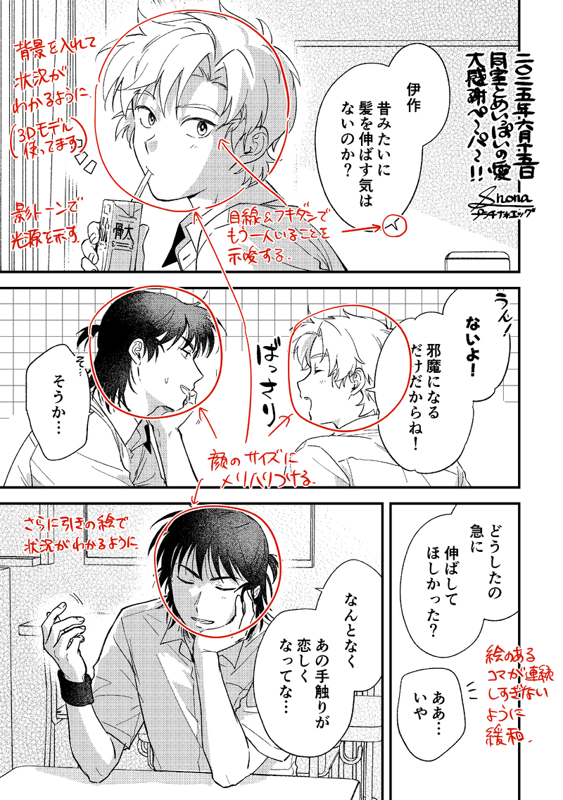 最近はよく、「テンポの調整」「ページ送り」「行間を読ませること」を意識してネーム切るようになったかな……