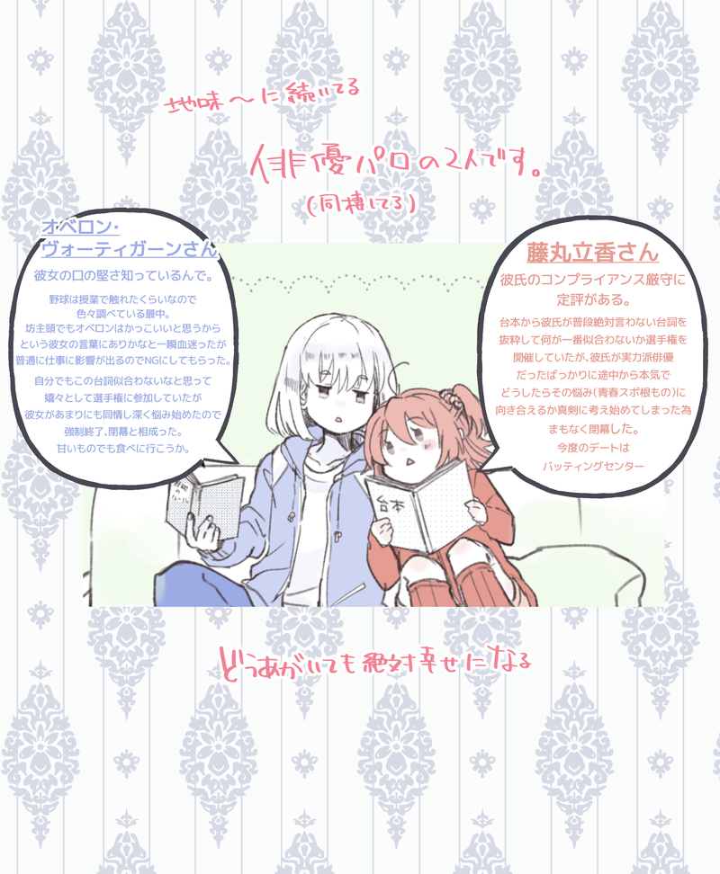 Koyurkg☆quiet followDONE■野球ものの青春スポ根映画のオファーが来た俳優パロオベぐだ♀のお話※地味に続いてる俳優が生業のオベと一般人ぐ♀のパロ。「オぐが高校の同級生だった、彼氏が人気俳優、同棲してる、毎日が楽しい」だけ知ってれば読めるパロです。 show all(+1 images) Tap to full screen (size:1400x1701).Repost is prohibited Let's send reactions! freqpopularsnackothersPayment processing Replies from the creator Follow creator you care about!☆quiet follow KoyurkgDONE定期的にこする好き放題パロです(詳細は1枚目)新人巫女さんによるサナギ様食育計画 3 KoyurkgDOODLE🐰day 2 KoyurkgDONEオくんは自己評価最低すぎて、意識して行動してない時に自分のせいでぐちゃんの感情が動くなんて珍しい〜って何回経験しても何回も思いそう 3 KoyurkgDONE俳優パロのおべぐ♀です。もう俳優してないです。番宣でバラエティ番組でてるみたいな香りだけさせてる。※パロ苦手な方は閲覧ご遠慮ください。季節を楽しむ二人です。 9 KoyurkgDONE攻略チャート振り出しに戻ったのでまたはじめからチャートを組みます。得意です。構ってもらった結果の既刊わすれね逢瀬の2人+ちゅーです。構ってもらったくせにちゅーしたら私のおべぐ卒業しちゃう…(ときメモシステム)って我が儘言って未遂にしましたすいません。 7 KoyurkgDONEブリサマ初見の不機嫌くんと水着の攻撃力がなかなか高いという知見を得た恋する女の子ぐちゃんのおしりに全力を入れたことをバレるわけにはいかなかったのでポイピククッションします(バレてる) 4