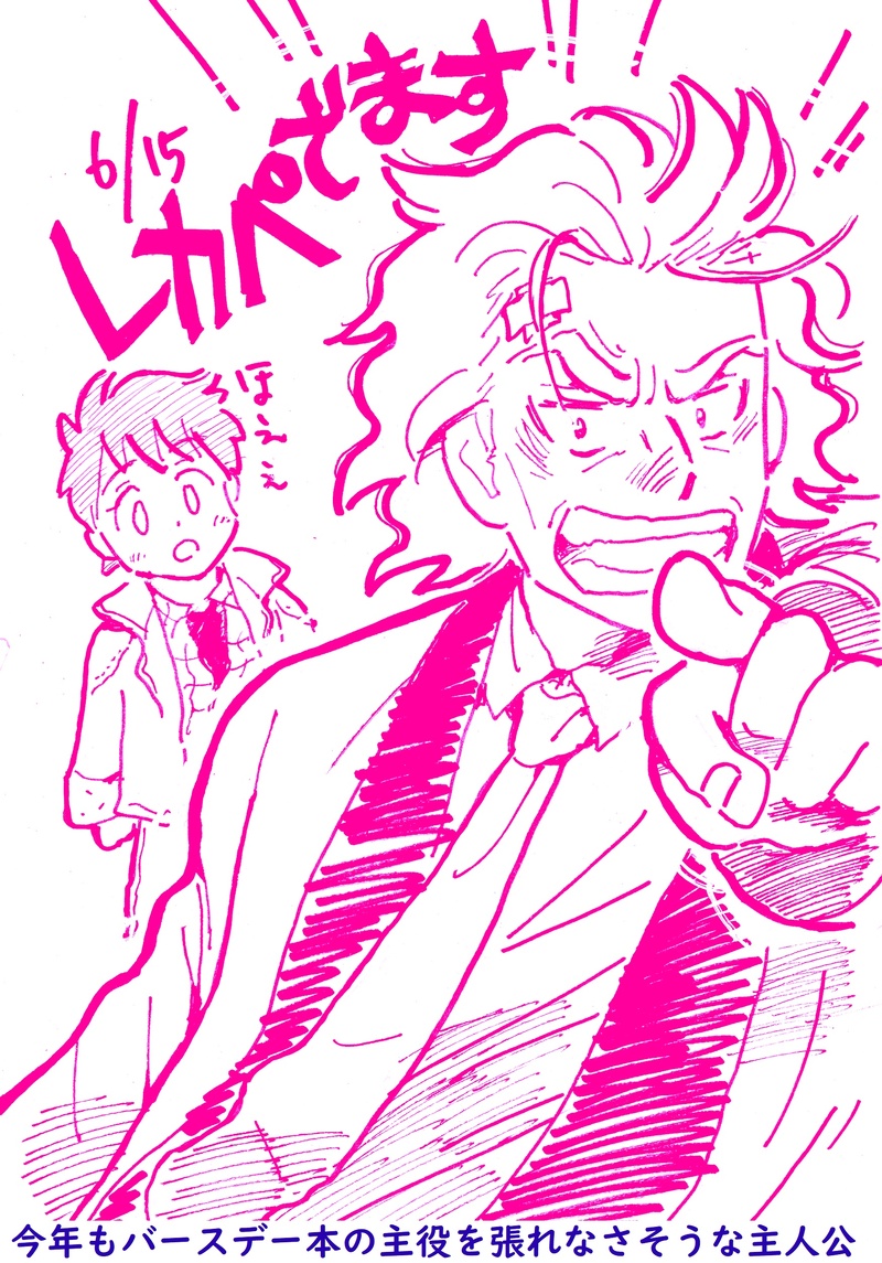 けいさん(ぷろだくとけい)☆quiet followINFOム出ないので頭を打った勢いで申し込みました #レカペ Tap to full screen (size:1749x2504).Repost is prohibited Let's send reactions! freqpopularsnackothersPayment processing Replies from the creator Follow creator you care about!☆quiet follow けいさん(ぷろだくとけい)PROGRESSタレ目むずいです けいさん(ぷろだくとけい)DONEXで流れてきたくじの動画、どうしてもぱんつを目立たせたいという確固たる意思をかんじる。1等賞かな?pass =数字3つ(びーえるの旧名称) けいさん(ぷろだくとけい)MENU8/17インテ新刊。5号館 I 21a今回は全年齢です(持っていく既刊はその限りではない)発送はイベント後になりますがBOOTHにも出てます。https://timefly.booth.pm/items/7276549今回ははまりたてのひとにも向けてる感じ。オンイベ展示(まじめ)再録2本とSNS絵まとめと描き下ろしのしょうもなギャグ。やっぱりおたんじょうび本らしさはあまりない(笑) 7 けいさん(ぷろだくとけい)DONE旧作オンリー用に追加の新展示2P。これも8月新刊に再録されます。 3 けいさん(ぷろだくとけい)DONE6p展示です。全年齢。ミュージカル版もみた人はちょっぴり影響がわかるかもしれない(ネタバレはしてない)最後に8月インテのCMとよろず旧展示で少しだけ扱ってる作品名のせときます。(伏せるような内容ではない古いものや手帳のなぐりがきも入ってますが、興味あればそちらも覗いてみてください。(ぽいぴくを介してます) 10 けいさん(ぷろだくとけい)DOODLEさわまる展示の映画よろずぶん(過去作品再掲)。3枚目以降にさらにだいぶ前のらくがきをぶちこみました。推し映画(BTTF)のプレゼンもしれっとまざってますw 14 related works けいさん(ぷろだくとけい)INFOム出ないので頭を打った勢いで申し込みました