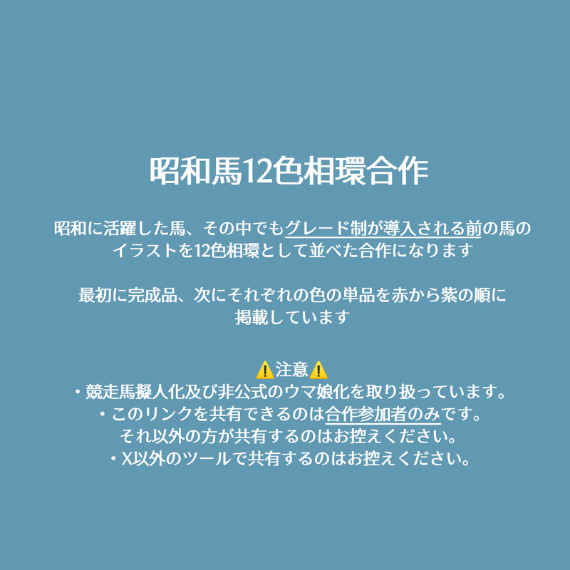 昭和馬(グレード前)12色相環合作です。