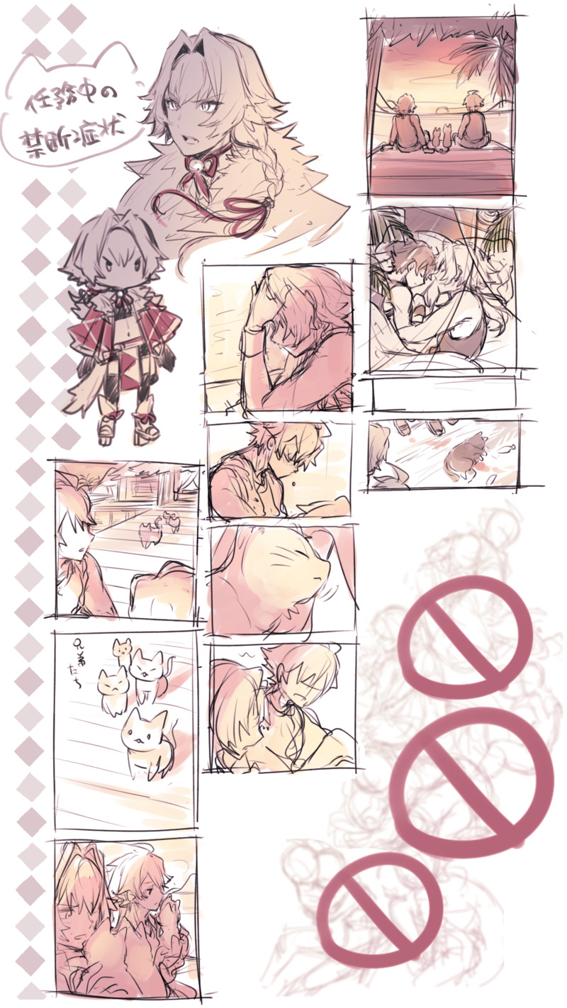 中央のコマ群:寝る前とかに妄想してる虎牙ストーリーの中のひとつで、猫島リゾートに取材がてら遊びにきた漣とタケルと現地の猫たちのお話