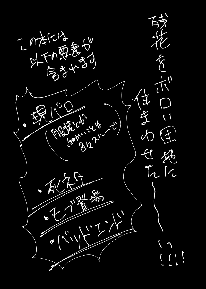 ebiebitempura☆quiet followMENU5/3超残狂ハルシネイトにて頒布予定の残花本のサンプルになります。 show all(+11 images) Tap to full screen (size:1091x1531).Repost is prohibited Let's send reactions! freqpopularsnackothersPayment processing Replies from the creator Follow creator you care about!☆quiet follow ebiebitempuraPASTベラミー一人アンソロを発行した時に付けたおまけの小冊子です。本体は十人の人格で描きましたがこちらは十二人の方が描いてくれました!!!ありがとうございました!! 16 ebiebitempuraPAST2018年に出したペド性癖ヴェルゴさん本です。ベビちゃん、シュガー、若様、モブ。何でも許せる人向け。 29 ebiebitempuraPAST2016年に出したベラミー一人アンソロの中身です。当たり前のようにドフベラです。もう半分黒歴史化していますが見たいと言ってくださる方がいて嬉しかったので再掲します。同じセリフ回しを違う漫画でしている事に後から気付きました。 63 ebiebitempuraDONEオタクの同居人に推しの絵を描いた本を渡したい!の本です。描いてくださった方本当にありがとうございました!! 25 ebiebitempuraDONE5/3超残狂ハルシネイトでの新刊「のどがかわく」おまけ漫画。パスワードは奥付に書いてある「→」の個数です。 3 ebiebitempuraMENU5/3超残狂ハルシネイトにて頒布予定の残花本のサンプルになります。 12