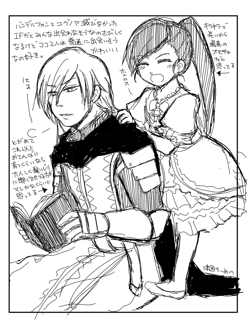 if世界でも絶対会いそうなホメ兄ちゃんとマル姫の組み合わせ好きなんだよなあってらくがき複数枚。連携技でWデビルモードとかしないかな。