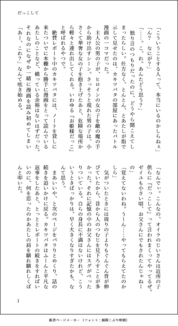 calme☆quiet followDONEカキゼイ/だっこして #カキゼイ show all(+2 images) Tap to full screen (size:618x1132).Repost is prohibited Let's send reactions! freqpopularsnackothersPayment processing Replies from the creator Follow creator you care about!☆quiet follow calmeDOODLE竜の花嫁/カキゼイファンタジー世界観あるあるの、謎の婚姻儀式大好きマン 4 calmeDOODLEチャレ!31の無配と同世界線のカキゼイ小話。捏造いっぱい。えっちなのアリ。18歳以上ですか?(y/n) 7160 calmeDONE爽快サイクリング/カキゼイ⚠️拙作同人誌「Relight」の設定のカキゼイ5/22はサイクリングの日らしいので久しぶりにテキーラも使ったあっちゃこっちゃしっちゃかめっちゃか書いてるのがモロバレ激遅執筆テキストライブの記録↓ カットあり倍速がみやすいかとhttps://txtlive.net/lr/1747886865604/s1747906671650 4 calmeDONEカキゼイ/はみがきじょうず 5 calmeDOODLE今年中に出したいカキゼイ新刊の進捗既刊の続きおわんね~~~~~たすけてくれ~~~~載せた場所以外まともに書いてないんじゃぼけ~~~~ 28282 calmeDONEカキゼイ/嘘が好き、嘘つきが好き 4 related works ray7forsythiaDOODLEカキゼイのお戯れ218+? yes or no 2 calmeDONEきみのがうつる/カキゼイ calmeDONE爽快サイクリング/カキゼイ⚠️拙作同人誌「Relight」の設定のカキゼイ5/22はサイクリングの日らしいので久しぶりにテキーラも使ったあっちゃこっちゃしっちゃかめっちゃか書いてるのがモロバレ激遅執筆テキストライブの記録↓ カットあり倍速がみやすいかとhttps://txtlive.net/lr/1747886865604/s1747906671650 4 calmeDONEこんなときだけ綺麗に返すな/カキゼイ暗めのカキゼイ 2 calmeDONEぜんぶ顔にでる/カキゼイ 2 calmeDONE年越しの日に/カキゼイRelightの二人が年を越す! 11 クレッシェンドDOODLEゼユちゃんがガチで怯えてるのもあり calmeDOODLEチャレ!31の無配と同世界線のカキゼイ小話。捏造いっぱい。えっちなのアリ。18歳以上ですか?(y/n) 7160 calmeMOURNINGカキゼイ/「Relight」3章 MyFireの没原稿こうなる世界線もあったのかな~と思って見ていただければいいのかと。没原稿なのでおおめにみてね。 6 recommended works ego.DOODLE描き始め何描こうか悩んだけどミスオエ!!今年も好きなものいっぱい描いていきたいと思います!!よろしくお願いします!!!! Oa1n08re1A0hjSpDONEパラロイ時空のミスオエ。本編の1000年後に過去の世界に旅行に行くお話。背景がウザくて読めない人向け。 4632 水野しぶきMOURNING【ミスオエ】ミスオエに対して「何?」ってなりたいだけの話 4 おとなしDONE最後3枚は再掲です 9 水野しぶきDOODLE【スノホワ】凶暴ミスオエで発散するスノホワ先生の話北時代 4 ぱりこ2号DONEミスオエが死んだモブ魔女について世間話する会話漫画(202221204ミスオエwebオンリー悪食と甘党に展示予定だったもの) 11 水野しぶきDOODLE【ミスオエ】二律背反ミスオエワンライお題「邪魔」 5 AMONDOODLE河神 3 ChaeDOODLE⚠️ 고어 (G-18, R-18G), 내장, 장기, 유혈, 피, 장기적출 ...?묘사가 자세하지는 않지만 어쨌든 여러모로 주의해주세요... 2