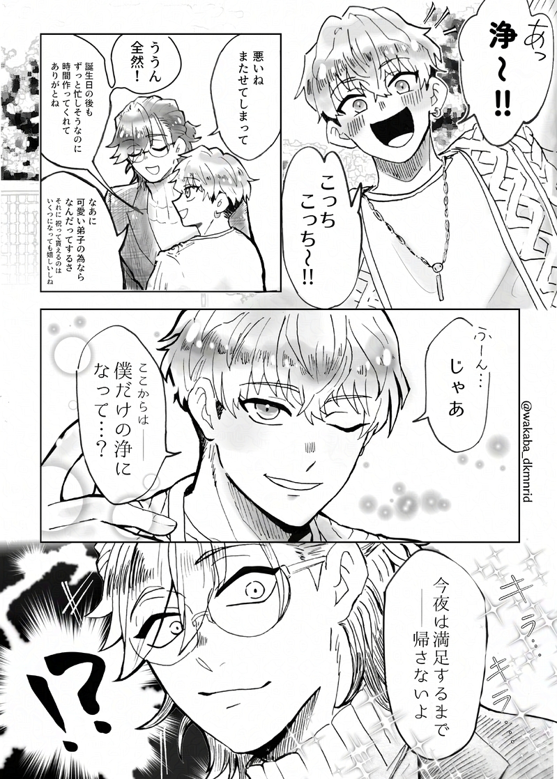 wakaba_dkmnrid☆quiet followDONE【Kaleido Masquerade3】颯浄(颯→浄)#お誕浄日会 企画漫画浄の誕生日から数日、まだまだお祝いしたい颯が浄とお出かけするってよ show all(+2 images) Tap to full screen (size:2591x3624).Repost is prohibited Let's send reactions! freqpopularsnackothersPayment processing Replies from the creator Follow creator you care about!☆quiet follow wakaba_dkmnridDONE【Kaleido Masquerade3】皇浄#お誕浄日会 企画漫画今年もわがままなバースデーボーイにケーキを作ってあげた皇紀さまと美味美味している浄 4 wakaba_dkmnridMOURNING【Kaleido Masquerade3】宗浄(※まだ付き合ってない)あの日見た夢の続きは悪夢か…それとも……下描きの状態ですが、いずれはちゃんと… 4 wakaba_dkmnridDONE【Kaleido Masquerade3】颯浄(颯→浄)#お誕浄日会 企画漫画浄の誕生日から数日、まだまだお祝いしたい颯が浄とお出かけするってよ 3 wakaba_dkmnridDOODLE被験者ᒍ第二部振り返りして滾ったので🙂↕️ぐぁぁあああ叫ぶとこボイス付きで聞いたらやべえですね!!!ふはは! wakaba_dkmnridDOODLE※肌色め髪かき上げ舌ペロじょ没ったのでご供養…🙏 wakaba_dkmnridDOODLE※年齢操作※捏造だんだん鱗片が見え始めた10代のじょ※レディへの思いやりはまだ無かったり、ね related works wakaba_dkmnridDONE【Kaleido Masquerade3】颯浄(颯→浄)#お誕浄日会 企画漫画浄の誕生日から数日、まだまだお祝いしたい颯が浄とお出かけするってよ 3 wakaba_dkmnridDONE【Kaleido Masquerade3】皇浄#お誕浄日会 企画漫画今年もわがままなバースデーボーイにケーキを作ってあげた皇紀さまと美味美味している浄 4 recommended works meritotsuDOODLE【シンウシ】「どーでもいいぜ」状態から目を覚ます殿の漫画と、二人がキスしてる落書きまとめ 2 yuu85850DOODLE2.4ストーリーのネタバレぽいやつ最後にあります大体ラフか落書き 丹星ちゃん本当可愛い… 5 Flame06028621DOODLE 2 花梨。MEMOどーーーーーして思いついたらメモっちゃうんだろうね。そしてどーーーーーーして特級呪物になるんだろうね?⚠️bcis🔞⚠️♡喘ぎ⚠️文才はない。国語は万年3⚠️甘々を目指した。誤字あったらごめんなさいpass:18↑ y/n 5229 トリタネ🌱DOODLE興宮高校の世にも恐ろしい不良……(沙) 2 🍎🍎🍎DOODLE~0131 絵チャとかお絵描きまとめ 5 ラテ茶TRAINING げすいどうDOODLEスマホ画面から出られない🎙️ニキ。ムッ…が足りない ダンボールDOODLEアーマードコア風箱付き