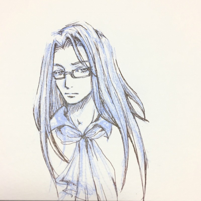 青芯シャープで下書き、そのままでペン入れ後、更に青芯で影とか濃淡つけてみました。