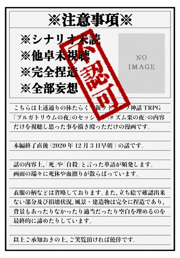 おおやま☆quiet followSPOILER時間が掛かり過ぎましたが、何とか仕上がりました。 #ズム栗の夜 nightOfZumChestnut show all(+25 images) Tap to full screen (size:600x861).Repost is prohibited Let's send reactions! freqpopularsnackothersPayment processing Replies from the creator Follow creator you care about!☆quiet follow おおやまDOODLEサンカラオルソドクシア良過ぎて……(平伏)(信仰)ほんのちょっと流血表現あるのでワンクッションします。クソデカ感情ぶつけただけの落書きだけど、もうちょっと肉付けていつか清書できれば……いいな…… おおやまDOODLE #REDあたなる謎解き の探偵事務所関連の二次創作漫画です。おおかた捏造です。 23 おおやまSPOILERエンプレまとめその2 ※2巻までのネタバレを含みます。 10 おおやまSPOILER木ノ葉ばんび君 3 おおやまSPOILER犬飼くん色塗った(2枚目眼帯なし差分)キャラシに右目詳細明記なかったので念の為タグ仕込みます。 2 おおやまSPOILERここまで溜まった分と3話時分の捏造妄想2ケ。3話まで読んでの妄想が入っているので念の為タグをつけています。 8 related works ioio_irohaSPOILER傷多き協力者、金管寺 喇叭。 おおやまSPOILER時間が掛かり過ぎましたが、何とか仕上がりました。 26 れてぃSPOILER #プルガトリウムの夜 #ズム栗の夜いよいよ問題のシーンに入ってきましたKP様も視聴者もきっとざわついた例のシーン……勿論脚色はありますが少しでもあの温度感が文章に乗ればいいな。ここからラストまで怒涛の展開なわけですが、ほんとうにさいこうなので全人類見て欲しい 作者様と同様ズム栗限界オタクになれます 7494 れてぃSPOILER #プルガトリウムの夜 #ズム栗の夜 後編9番目の投稿ですいよいよお話もクライマックス直前までやってきました彼らのたどる結末本当に良くて…セッション中、KPの中尾さんが限界化してたけどあの時のコメ欄皆限界になりましたよね今回はその直前くらい?になるのかな、二人のシーンをじっくり書けて満足ですギャグもシリアスも天才しかおらん驚天動地 そして中尾ヤスヒロを絶対にゆるさない(五体投地感謝) 10742 mynoghra1031DONEズム栗の夜をイメージしたネイルチップ。ネタバレ要素あり。 9 nmnmnm7745SPOILERねえもう本当に無理 耐えられない 苦しい れてぃSPOILER #プルガトリウムの夜 #ズム栗の夜亀の歩みですが進んだー!いよいよクライマックスフェーズに入っていく……その前のある意味では息抜きパートというか だからおもしろの応酬を文章化するのはむずいねんてがんばる わたしもがんばるよ班長……喇叭くん……それより中尾さん、プル夜2周年and続編発表おめでとうございます……!早くあの世界観に浸りたいみんなも道連れだよぉ 9462 おおやまSPOILER随時追加します 7 れてぃSPOILER #プルガトリウムの夜 #ズム栗の夜ノベライズ続き。前編終盤でございます。新免さんと喇叭くん、やっと同じ標的を捕捉した感あるなぁ……次くらいで前編終わりかな?今年度中に仕上げたい。 7769 recommended works puchitomate0141SPOILER #トンエミ傀逅全部見終えた記念!今回かなりいい感じに描けたと個人的に思っております 榾(ほた)SPOILER下記でまとめた二次創作まんがの小ネタ等まとめhttps://www.pixiv.net/users/12997382※傀逅・トンエミ傀逅ネタバレ注意 2 カピカSPOILER wasabi_2goukiDONETwitter投稿済み。大好き04トリオ....。゚(゚´ω`゚)゚。 れてぃSPOILER #プルガトリウムの夜 #ズム栗の夜色んな情報が出る出る……!整合性取れるようにしてるけど後から調整必須でしょうあとは少しだけ、彼らならではのドタバタシーンもございます。温度差がすごいけど頑張って書き切りたい……!後半戦は山場も見所もたくさんなので、その一端でも表現出来ていればいいな。精進します。 9229 s__zattaDOODLE改めて見てうわぁってなったアナログ殴り描きです。自己解釈による医者の捏造セリフがあります。 3 おおやまSPOILER木ノ葉ばんび君 3 れてぃSPOILER #プルガトリウムの夜 #ズム栗の夜遂に!!!!完結しました!!!!!例によって私の妄想で補完している部分は多々ありますが、どうにかこうにかまとめることが出来たと思います…!約二年間お付き合い頂いた方々ありがとうございます。迷い続けた執筆でしたが一先ず無事完結出来て安堵しております。皆様の暇つぶしのひとつに数えて頂ければ幸いです。作者様PL陣、そして読んで下さった貴方様に最大限の感謝を込めて。 7641 wasabi_2goukiSPOILER #れじの04【1-3】大好きなセッション内容を個人解釈で漫画にしていきます。ゆっくり...続きます...。視聴済みの方のみどうぞ。※雑です。【new】どうでもいいあとがき付き。 12