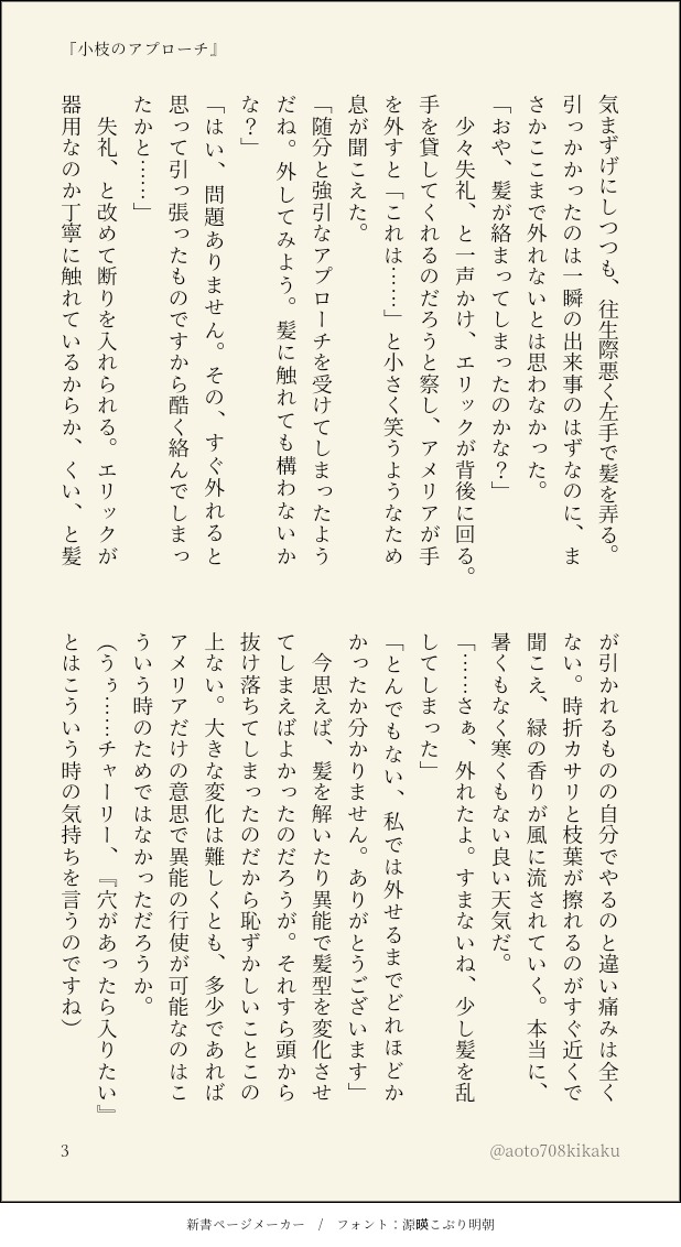 Aoto708kikaku☆quiet followDONE小枝のアプローチ ##アンチクラフト show all(+3 images) Tap to full screen (size:618x1132).Repost is prohibited Let's send reactions! freqpopularsnackothersPayment processing Replies from the creator Follow creator you care about!☆quiet follow Aoto708kikakuDONE左さん宅:シヴィライトさんとの『育ての親/師弟』関係成立作品 3 Aoto708kikakuDONE供養作品集(うきまほ)1 5 Aoto708kikakuDONE魚狩り 9 Aoto708kikakuDONEそして、のどか過ぎて寝た 2 Aoto708kikakuDONEチェンジリング(ゼロさん対策) 4 Aoto708kikakuDONE収穫祭~フレヤさんと~ 3