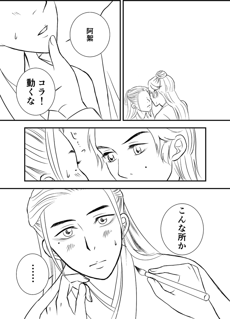 阿絮が老温に化粧をしているお話。