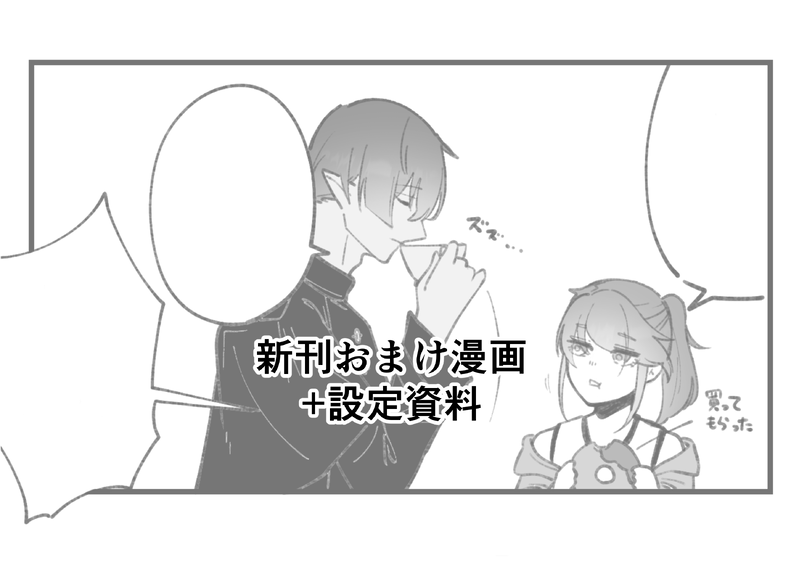 頭割り番外編発行『夢路を辿る』のおまけ漫画+設定資料のらくがきです。