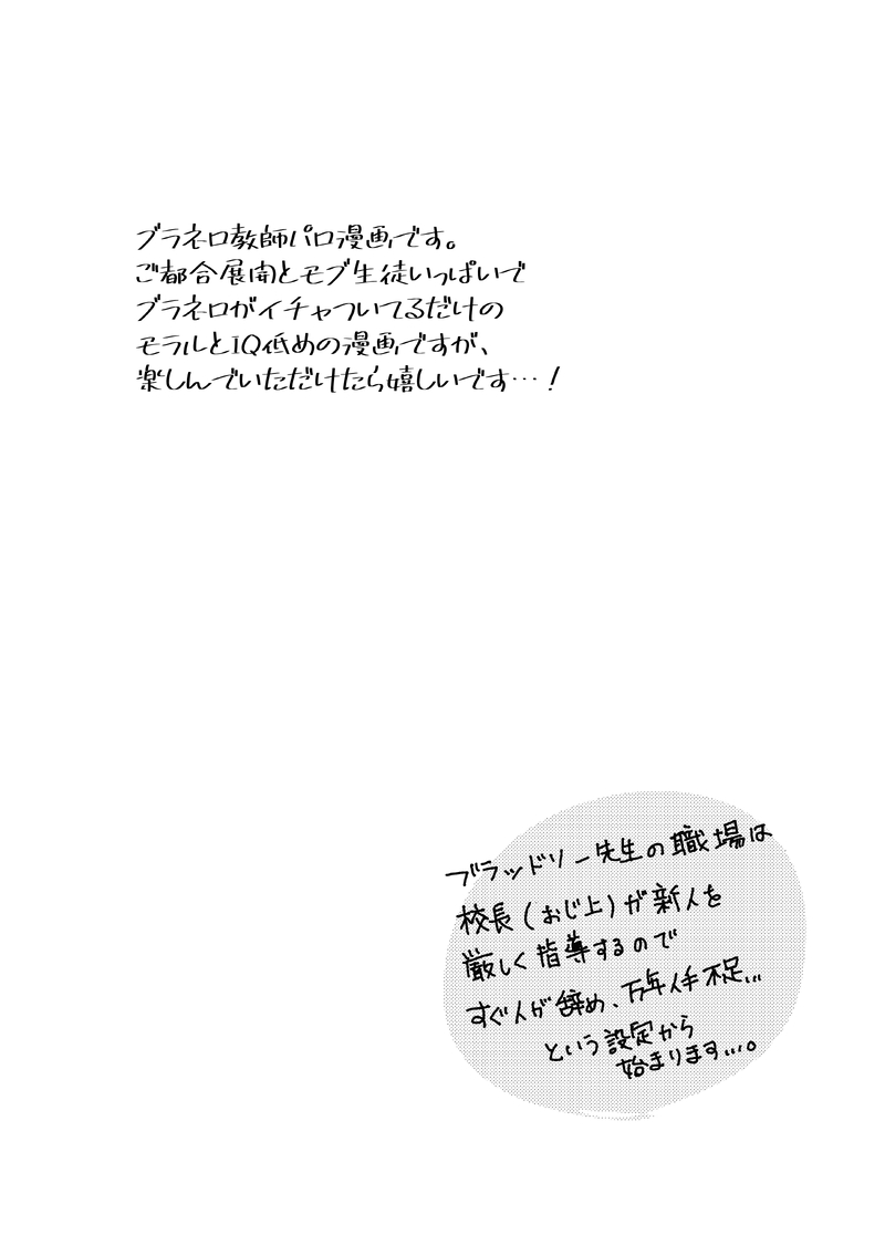 lus☆quiet followDONE22.10.09 ブラネロ 現パロwebオンリー「現の沙汰もおまえ次第」展示内容です。閲覧パスはお品書きをご覧ください。 show all(+7 images) Tap to full screen (size:3496x4961).Repost is prohibited Let's send reactions! freqpopularsnackothersPayment processing Replies from the creator Follow creator you care about!☆quiet follow lusDONE23年のリアイベの無配マンガです。2部終わった直後のネロの誕生日のお話。 5 lusDONE6/15頒布予定の新刊サンプルです。フィガロと晶が北の果ての海を調査しに行く話です。出せますように… 5 lusINFO新刊サンプルです。WEBオンリーに間に合わせる予定だったのですが、仕事で間に合いませんでした…(T_T)3月目標で進め、出来上がり次第通販する予定です。5月のイベントでも頒布します。 7 lusDONEブラネロwebオンリー「そういうことにしてるつもり!」13展示作品です。何でも許せる人向け、牛の乳を絞る感じの頭の悪い漫画です。 9 lusDONE両思いになったばかりの晶くんのお話。 8 lusDONEブラネロwebオンリー「そういうことにしてるつもり!」12の展示内容(小説)です。自分を殺してくれる相手を探す西の魔法使いとネロが出会うお話です。バッドエンドではないですが、ジメジメしていてハッピー要素少なめです。 12