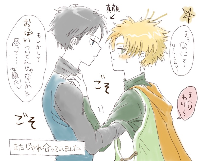 maitake☆quiet followDONEまだ出会って初期の頃、2人旅の頃のロレサマ妄想ダヨ!スタンプたくさんありがとう😂/0420 ##ロレとサマ #ロレサマ lolézama show all(+1 images) Tap to full screen (size:1569x1244).Repost is prohibited Let's send reactions! freqpopularsnackothersPayment processing Replies from the creator Follow creator you care about!☆quiet follow maitakePROGRESSリク絵(漫画)描いてはいるんですよでもなかなか進められず😢待たせ過ぎて申し訳ない。でも楽しく描いてます…(独り言) maitakeDOODLEロレサマの日だしちょっと。1枚目と2枚目は関係ありませんが並べると意味深かも 2 maitakeDOODLE距離近ロレサマ描いてくよー maitakeDOODLE maitakePROGRESSTwitterでやっと自分のことお知らせできたのでほっとしている…☺️次の1p漫画のロレサマっぽい1コマ。このコマが描きたい漫画だな maitakePROGRESS間に合うかなぁーこれは何としても描き上げたい………追記:お祝いに間に合いました。完成版はツイッターに。たくさん見てくれて嬉しいな related works maitakeDONEまだ出会って初期の頃、2人旅の頃のロレサマ妄想ダヨ!スタンプたくさんありがとう😂/0420 2 黒羽(DQアカ)PAST出会って、まだ慣れない頃の2人~現在の思い出話。・ED後、ロレサマ結婚しています。・ムーンブルクは復興済。王女が治めています。・受けのふぇら…あります。苦手な方はご注意下さい。・かなり自由な設定です。創作苦手な方はご注意下さい。2016年に別垢で書いたロレサマ小説です。ちょっと修正しました。読みやすくなっていればいいのですが…。 9577 桐嶋佐貴DONE当家ロレサマの設定資料です。 WaisanDOODLEDQ2 ローレシア王子とサマルトリア王子素潜りで財宝取ってくる場面 2 omt_reopMEMO 1092 桐嶋佐貴DONE『23日はみんなでロレサマかこう』の第一回お題作品。うちの作品初見のかたへ、ロトっ子たちの冒険初期設定ローレ:ジークヴァルト(16)サマル:エヴラール(19)ムーン:ヴィオレッタ(12)サマル優位め。ムーンは二人を兄さま呼び。ロレサマ本に収録した小説の後日談的なものです。『面倒な男(全年齢版サンプル)』https://poipiku.com/471134/7167908.html 2950 桐嶋佐貴PROGRESSロレサマwebオンリーにて発行の本に収録予定の作品(の一部)で途中経過のものです。これと小説が3編ほど入って一冊になります。後半肌色絵があるので背後に注意。 15 recommended works nana778DONEインク松月間#おそ松さん 十羅蝶火PASTPixivsketchまとめ2018/03分アナログ デジタル ごちゃまぜ 43 十羅蝶火PASTPixivsketchまとめ2018/08分(上)アナログ デジタル ごちゃまぜ 44 永海まみPROGRESS好きなジャンルの推しCP達!背景は全く考えない!(笑) ねりうめDOODLEラクガキ詰めサマルの髪型の迷走っぷりよ 6 nana778DONE #おそ松さんパンツとバニーの日 AmA°TRAINING推しを描かせていただくやつで書いたやつです! 3 namatamago625MAIKING食べないでくれ〜 nana778DONEインク松25日目#おそ松さん
