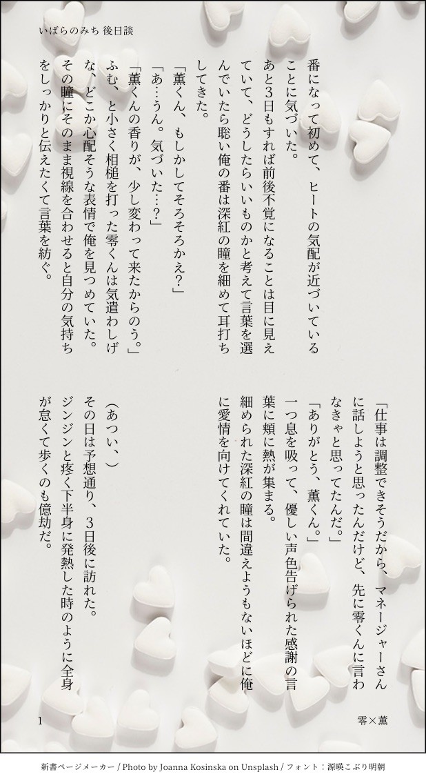 candymonopolize☆quiet followDONEいばらのみち 後日談。リクエストの薫くんの巣作り。 #零薫 show all(+3 images) Tap to full screen (size:618x1132).Repost is prohibited Let's send reactions! freqpopularsnackothersPayment processing Replies from the creator Follow creator you care about!☆quiet follow candymonopolizeSPUR ME推敲もしてねぇけど 3051 candymonopolizePROGRESSホラー仕立ての零薫でしかも、私の性癖詰めてるからSM寄りです。何がとび出ても許せるかただけ。 2591 candymonopolizeDONEお題箱にてリクエストいただきました!夏まつりと零薫ちゃんです!!!いつもと作風が違うので照れくさいです 3117 candymonopolizeDONEリクエストいただきました、Sub零×Dom薫です。pixivにあげている『狂い咲く緋』のふたりだと思って貰えたら嬉しいです。 1683 candymonopolizePROGRESSちょっと手を止めてたんだけど、少しだけ描き進められたので。好きだけど踏み出せない薫に協力してくれるひとがいて、でもその協力の仕方が斜め上。後天的女体化してしまうおはなし。これからどうするか決めてないからとりあえず感想とか予想とか貰えたら嬉しいです。 3525 candymonopolizeDONEいばらのみち 後日談。リクエストの薫くんの巣作り。 4 related works nmknosisavageDOODLE零薫最近してない2人ラブラブなだけ 2 shiki_rskhDOODLE鬼零×寅薫(鬼要素消えた) たよるDOODLEヘイはかぜタクシー pupun1123DOODLE酔っ払って一線越えちゃう零薫 2 🐰🐒DONEα×βの零薫ちゃん🔞(オメガバース)pw:右の子の誕生日(4) 3 白玉あずきCAN’T MAKEライブ後の零と薫ちょっと零薫の空気あり無茶な配置をしてしまい途中で描けなくなりました^p^いい顔描けたのに… たよるDOODLE【※中の人ネタ注意】4月18日の中の人ツイキャス…。コメント欄に流れてくる名前をひたすら呼んでくれるコーナーがすごかった…。オイオイ(笑)と思いつつ、ちゃっかり呼んでくれちゃうK氏のサービス精神に感謝の気持ちでいっぱい。 伊野の倉庫DONE2021.2.13Valentine Eve's Party開催おめでとうございます! たよるREHABILIここ最近のリハビリらくがき。music楽しい…!真上からの写メじゃないのであえてモノ写してます。 4