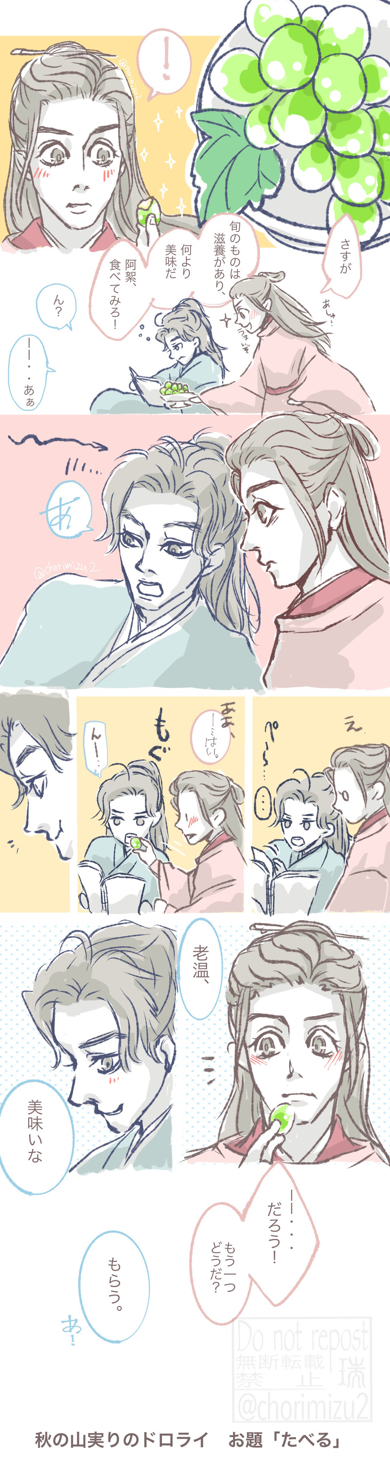 chorimizu2☆quiet followDONE温周。秋の山ドロライ参加作品。「たべる」Twitterに上げたものです。 Tap to full screen (size:1202x4502).Repost is prohibited Let's send reactions! freqpopularsnackothersPayment processing Replies from the creator Follow creator you care about!☆quiet follow chorimizu2DONE夏の🚪デート🏝️☀️ライチアイスティー。😘おかえし。(9/1追加) 2 chorimizu2DONEほたるび chorimizu2MOURNING間に合ってないけどせっかく描いたので。酔ったふりで。甘えにいくあしゅ。 chorimizu2DONE🎂お誕生日おめでとう!🎂大好きなものに囲まれて💕愛され凌凌✨末長くお幸せに chorimizu2DONE凌凌、お誕生日おめでとうー!!ということで、歌詞カードを作りました✨ みんなで歌おう🎶生日快樂♪ chorimizu2DONEとろさんの素敵なふんどし(ss)(言い方)を勝手に借りてお絵描きさせていただきました!ありがとうございました!!劇中より関係性が進んでるのでワンクッションで!こちらのssのラストシーンを凌凌視点でお絵描きさせていただきました✨おめでとう!お幸せに!!https://www.pixiv.net/novel/show.php?id=24456077 2 recommended works namaniesanDOODLEこれは新しいペンをdlしたのでらくがき。ところで、老祖さまの帯、前で結んでるのってけしからんと思いません??すぐに解くことが出来ますやん。しかも多分リボン結び、けしからんかわいい みちこDONE薛暁も宋暁も好きなんだ 落梅(おちうめ)PAST【阿苑をあやす含光君】【魏無羨の思い出が優しすぎて罰が足りない藍忘機】Twitterに流したやつで、続き描きたい気持ちだけがある…という。 4 chorimizu2TRAININGCQL 知己が寝てる時の魏嬰 はるもん🌸MOURNING藍忘機を泣かせ隊 4167 Sketch1008DONE【まとめ】パロとかMXTX作品関係今年に入ってTwitterに投げていたイラストをまとめてみました。城主のポ〇モンパロを考えていたちょうどその時に、☆先生も殿下のパロ絵をあげてらして、胸が高鳴っちゃったな… 6 kow_7726TRAINING下戸藍湛×バーテン魏嬰〜出会い編〜 2299 はるもん🌸MOURNINGイタズラ癖が一生治らない魏嬰。 544 NaO40352687DONE忘羨ワンドロワンライお題:「紅葉」所要時間:1時間45分注意事項: 道侶後 5132