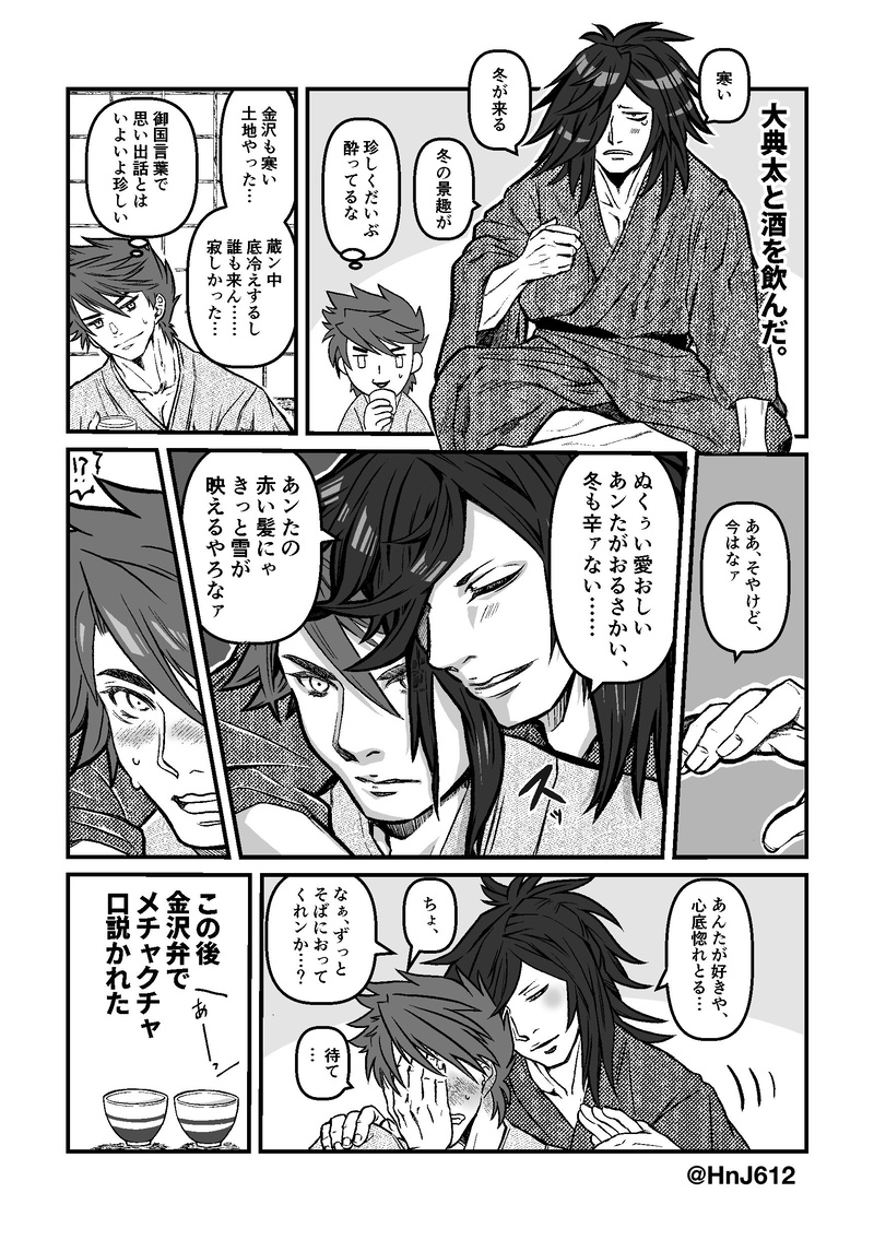 HnJ612☆quiet followDONE※典包※方言はネットの変換サイトがベース和服の資料を入手したのでようやく完成した付き合ってる典包酒盛りマンガ……。ふとした弾みに出る方言、大変、ものすごく、ひじょーーーに好きです。 Tap to full screen (size:1748x2480).Repost is prohibited Let's send reactions! freqpopularsnackothersPayment processing Replies from the creator Follow creator you care about!☆quiet follow HnJ612PROGRESSオンリーに間に合わなかった小説、10月に出ます。典包が一緒に風呂入ってただイチャコラしてるだけの本です。 HnJ612SPOILER八丁念仏くんの通常顕現台詞のネタバレ。 HnJ612DONE※※大包平極ネタバレ※※ありがとう大包平。大好きだ……。 HnJ612PROGRESSハァハァ……………典包新刊の表紙絵が出来たでござる……………… HnJ612DONEあえて相手を明記せず、好きな右包平カプで楽しんでください、という優しさ(という名のの勝手な解釈)に全イチコが涙しました。ハァハァ……ありがとうございます。おかわりお待ちしております(お茶碗持ちながら) 2 HnJ612DONE「表紙があれば本は出来る」と思い込んでいるので、小説コピー本の表紙を完成させました。 recommended works mizuto_midoriDOODLE腐向けです。包典っぽい絵と典包っぽい絵です。(包典包前提)いちゃこらしているので苦手な方は注意してください。 2 mizuto_midoriDONE腐向けです。典包っぽい絵と包典っぽい絵を描きました。(包典包前提)前にアップしたミニキャラ版(https://poipiku.com/2981975/8545423.html)を、いつも描いている頭身で描こう!と思って描いたのですが…ミニキャラと同じポーズで描くのが難しかったので、少しポーズが違っています。 2 綾ぽむDOODLE典包しあわせを噛み締めてくれ HnJ612PROGRESSオンリーに間に合わなかった小説、10月に出ます。典包が一緒に風呂入ってただイチャコラしてるだけの本です。 綾ぽむDOODLE無言かまちょな光世とそんな恋刀を可愛いと思ってそうな大包平 mugitea0001DOODLE修行期間中に描いてた光世さんと極光世さんと極修行後のいちゃつき典包漫画2枚目以降ネタバレ注意 3 綾ぽむDOODLE典包お絵描きバックハグかまちょ光世 綾ぽむDONE典包ジューンブライド🖤❤️ oyuPROGRESS👅