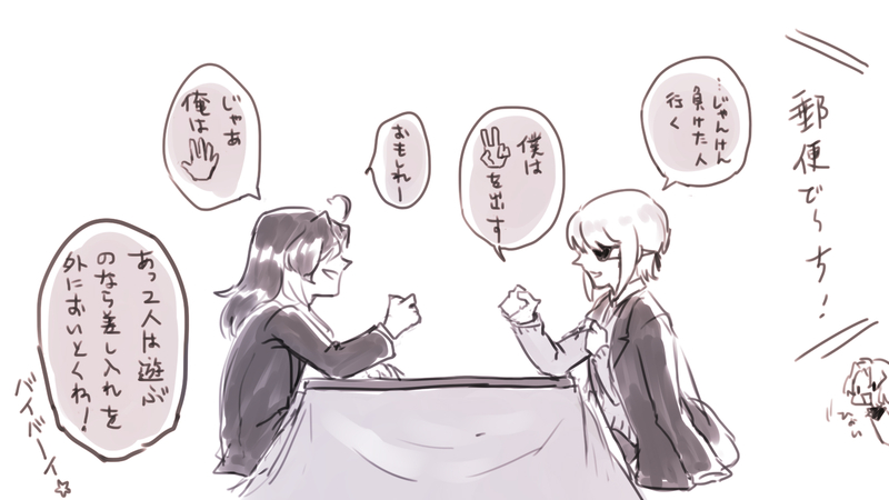 すがめ☆quiet followDOODLEコタツとジャンケンhttps://twitter.com/tsuenai/status/1482034200089817089?s=20 Tap to full screen (size:1600x900).Repost is prohibited Let's send reactions! freqpopularsnackothersPayment processing Replies from the creator Follow creator you care about!☆quiet follow すがめDOODLE すがめDOODLEあまり描かない頭身である すがめDOODLEねむい すがめDOODLE すがめDOODLE すがめDOODLE落書き伯仲祝装 recommended works かほる(輝海)DONEシティーハンター冴羽獠×槇村香原作以上の関係かほるさんちの獠と香ちゃんで「港」と「記念日」のお話はどうでしょう? 8ツイート(1120字)以上だと嬉しいですっ!#shindanmaker #CHしたったーhttps://shindanmaker.com/965157過去作を少し手直ししただけ😂 3 aosabikinakoTRAINING貴方はハル相で『最大級の口説き文句』をお題にして140文字SSを書いてください。#shindanmakerhttps://shindanmaker.com/375517 shirokumayutaDONEゼシカへククールは、内緒話をするように声を潜めて最後の嘘をつきました。それは自分の幸せのための嘘でした。「全部忘れていいよ」、と。本当に、ごめんね。https://shindanmaker.com/484159 4 いちず🍊DOODLEあなたはゾロナミの「……ひょっとしてそれって俺(私)?」という台詞を使った1コマ漫画を描きます。#この台詞を使って1コマ漫画 #shindanmakerhttps://shindanmaker.com/524501言わなそうで言わなそうで逆に言ってたら最高。多分ナミさんが「ゾロはおモテになりますもんね?そういう人はちょっと(安心できないから嫌)」みたいなことを言っててみたいな duffy_juMOURNINGカーネーションの後日談。オマケ的な。🐙🐬🦈の会話のみ。 405 reizi39TRAINING【触手ジェ R18】触手系初めて描いた。難しい…難しいよ触手!!!とりあえず知識がないのでよく見るスタンダード触手プレイを目指してみたんだけどこれで合ってる?!2枚目は落書きですパス:18↑? 2 titose0401hDONE貴方は洋花で『結婚しちゃおっか』をお題にして140文字SSを書いてください。#shindanmakerお互いに作ってくれる、あの味付けが好き。とかあるはず。まさに胃袋掴まれてるお互いに🙏✨よへは🌸だから作ってあげるだけで、実家でも作ったことなくて、一人暮らしでも作ったことないとかだと滾る洋花 桜餅ごめ子DOODLEカービィさんは『シュークリーム10個を上手に作ってこぼさず食べきらないと出られない部屋』に閉じ込められてしまいました。#1人用出られない部屋 #shindanmakershindanmaker.com/793622かわいかったので描いちゃった 2 zitaloveforeverPASTあなたは4RTされたら「すぐ嫉妬しやがって、可愛いやつめ」の台詞を使ってベリジタを描(書)きましょう。#shindanmakershindanmaker.com/528698 220