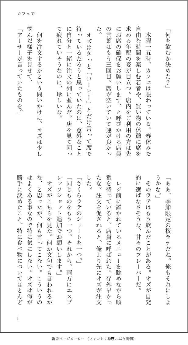 haya☆quiet followMEMO悠スフィ2にて展示したSS カフェでお買い物の休憩に某カフェでお茶するオズフィガ。現パロ。 show all(+5 images) Tap to full screen (size:618x1132).Repost is prohibited Let's send reactions! freqpopularsnackothersPayment processing Replies from the creator Follow creator you care about!☆quiet follow hayaMEMO hayaMEMO3 12 hayaMEMO 6 hayaMEMO2 26 hayaMEMO 18 hayaMEMO 14 recommended works motiuma3DONE赤リュール♂の幼少期の短い日常漫画少年漫画程度の暴力描写があります 4 すいたDOODLE媚薬部屋・静さに ourubakkusukoreDOODLEうずぶちの子還り現行見通過✖かみたにさんありがとうございました~~~~!!!!! 6 senkaDOODLEお花の冠ヘキです yuzitou4426DOODLEchilumi 3 しゅぶDOODLE🧣⚠女装注意⚠ omochi_hoshiDOODLESEVENSのルークのらくがき3枚。ルーク可愛いね、ルーク可愛いね。 3 iro_miduDOODLEあな...あなた言う、言う言う事をききききき聞きます… nyauオリキャラ寮DONE140 今年の主役君