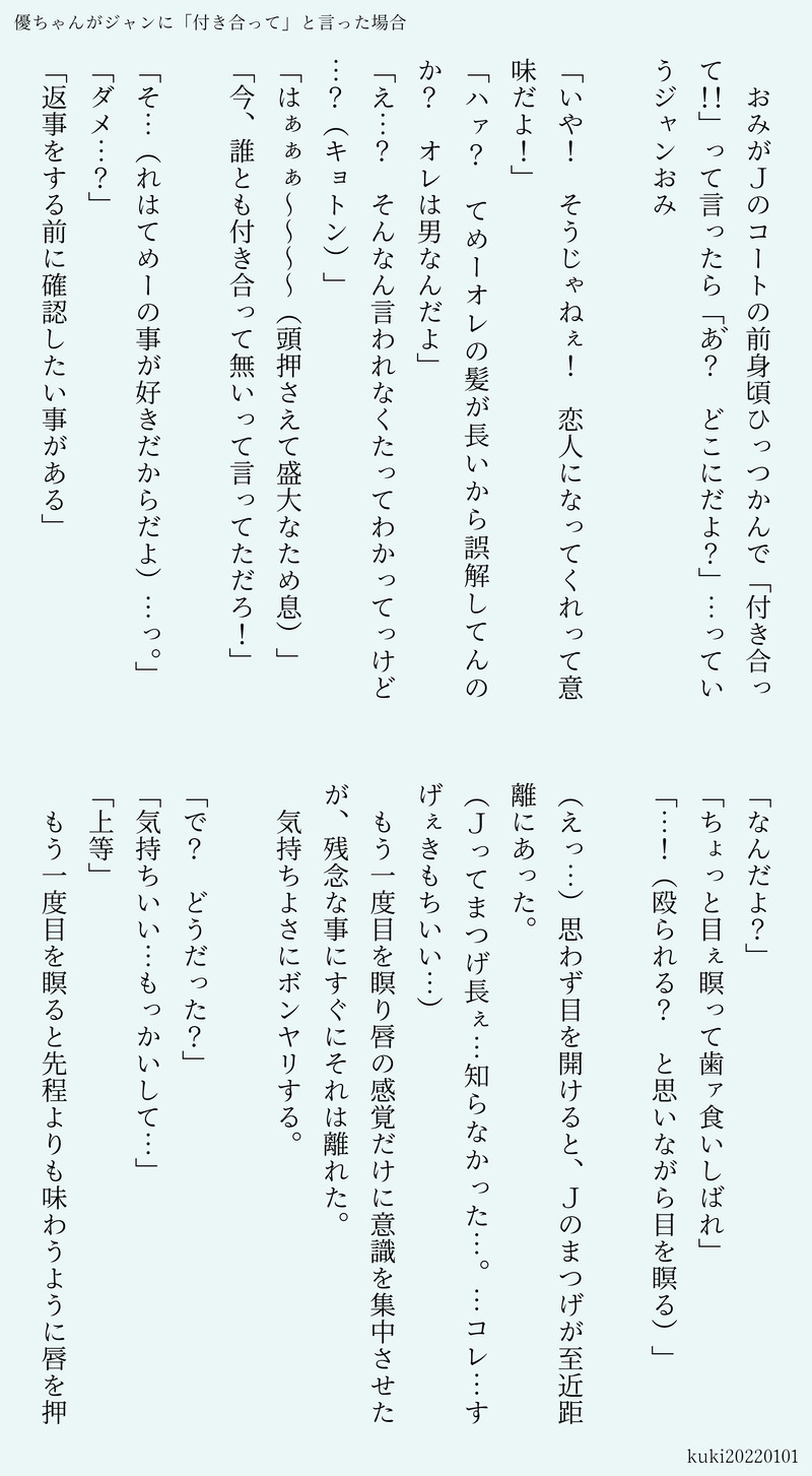 優ちゃんがジャンに「付き合って」と言った場合