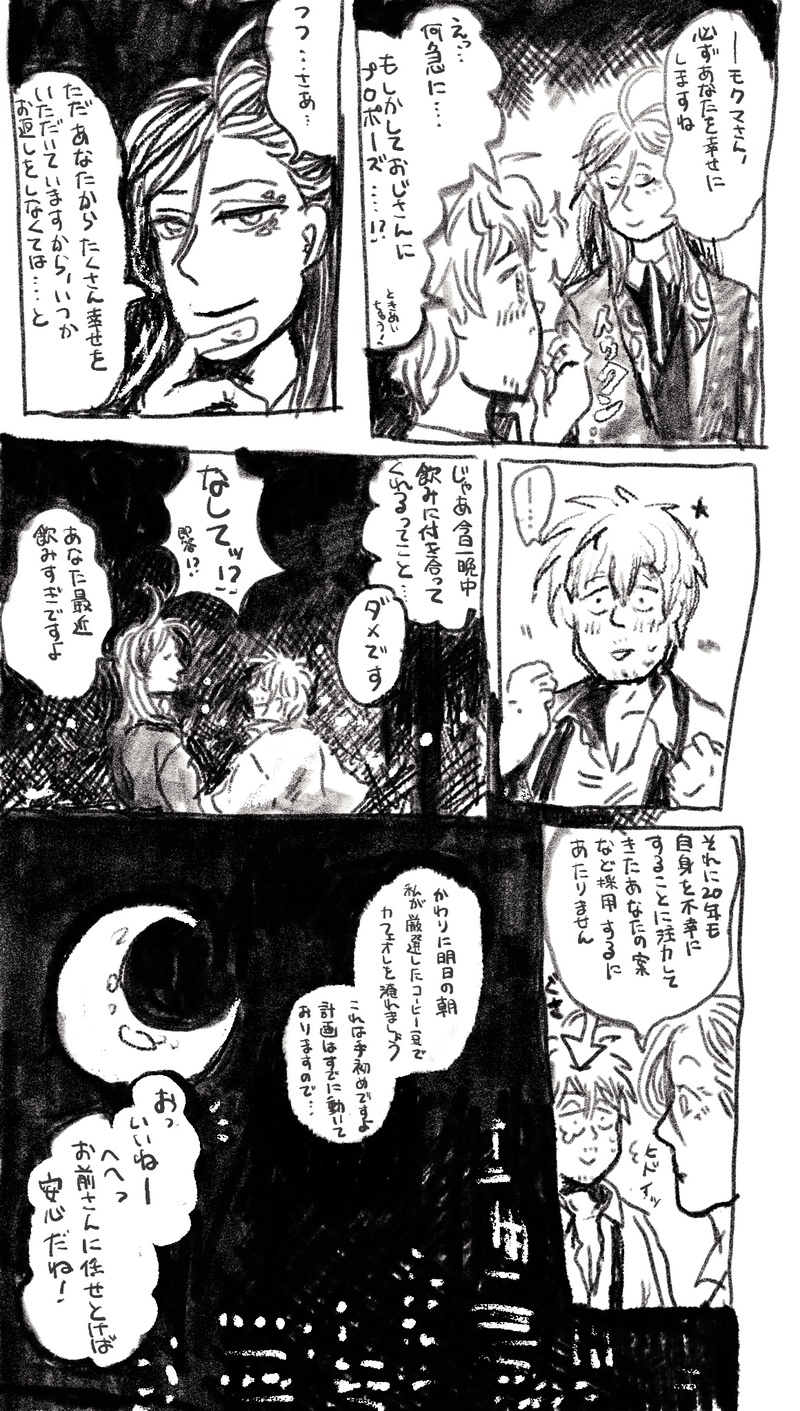 shinderuko☆quiet followDOODLEちぇも Tap to full screen (size:1160x2047).Repost is prohibited Let's send reactions! freqpopularsnackothersPayment processing Replies from the creator Follow creator you care about!☆quiet follow shinderukoTRAINING練習みたいならくがき shinderukoDONEやっぱフライングあげちゃお~モクマさんおたおめのまんが 3 shinderukoSPOILERおじさんがどうやってチェの居場所を突き止めたか想像するにつけ怖くて舌ベロォなるな 若干本編の方のネタバレ含 shinderukoSPOILER越境バレっぽいルーク(精神)とアーロン shinderukoDOODLE裏社会のふたりチェが世界征服にあたってまた裏組織作ってもモさんの存在隠してるか、チェ以外のひとには何故かしらんがうろついてる気のいい普通のおじさんぐらいに思われてて、対外的には「ニコルズには不穏な影がついてる」みたいな謎の噂だけが出回ってるみたいな感じだったら熱いな~みたいな妄想のやつだった(オタク特有の早口) 2 shinderukoDOODLEキス待ち顔を5分ぐらい観察されるモおじみたいな recommended works 燐音(リンネ)DOODLEバディミッションBOND体験版をプレイして沼にハマった記念の落描き① ymtoimDOODLEルークに雑に鼻血を拭ってほしいという煩悩 itUDONDONEチェズモク ※なんとなくバディエピ12話は経てる2人のイメージです自分を軽く扱って欲しくないチェVS軽く扱ってるわけじゃなくて本気で思ってるのにな〜のモ 3 makotoccDONEおじさんとメールと私(チェズモク) ヴォ。DOODLE彼ジャケ的なルーク masoo0803DONEチェズモクワンドロワンライ 様(お題:風邪)書かせていただきました!多分本編後のお話。本当に風邪引いてるのかは諸説ある 3 hatoSPOILERバディミプレイ記 Mission 4 (4枚) 4 ▶︎古井◀︎DONE春の陽気に大洗濯をするチェズモクのはなしお題は「幸せな二人」でした! 3560 johnDOODLE2周目でのたうちまわる お前がナンバーワン