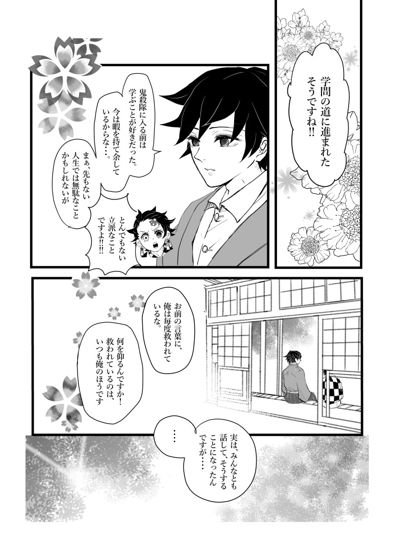未完成ですが供養。この後、蝶屋敷でカナ.ヲが苗字を選ばせて貰ったように、炭じろ達が引き取った孤児たちがみんなの苗字を選ぶ流れになるんですが、炭じろは自分に先がないから孤児も引き取らないよなと思ったら描けなくなったので供養です。下描きにベタとトーン貼った作画がちょいちょいありますが目を瞑ってください..🤦♀️