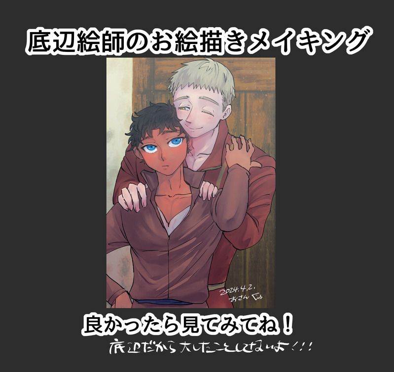 3_nosukee☆quiet followMEMOよんぱちさんとメイキング見せ合いっこ🍌🍌する約束をしたので(私の絵のメイキングの需要…?)と思いながらもこさえてみましたメイキング!快楽お絵描きマン過ぎて何の参考にもならなかったらごめんなさいだぜ!よんぱちさんのメイキングが楽しみだな~~~🥳❤️フッフゥ! show all(+13 images) Tap to full screen (size:1884x1775).Repost is prohibited Let's send reactions! freqpopularsnackothersPayment processing Replies from the creator Follow creator you care about!☆quiet follow 3_nosukeeDOODLEよんぱちさんと推しカプネーム交換会!私が描いた「北西のアオカン着衣えっち」のネームです!ごめん本当に線が汚い!!!笑雰囲気だけでも伝わったら良いなと思います。⭐︎おまけのラクガキも一枚あります⭐︎(年齢操作⚠️)パス🔑はこちらのカプ名「〇〇〇〇」ひらがな4文字です 6 3_nosukeeDONE親愛なるよんぱち先生とお互いの推しカプのネーム交換をするの会をしました!パス🔑「〇〇〇〇」カプ名ひらがな4文字よんぱちさんの描いてくださったジロノコのネームは、よんぱちさんのポイピク内に展示して下さってますので、是非!チェックして見てね‼️めちゃくちゃ最高だから…♡よんぱち先生ぇ!お付き合い頂きありがとうございました! 10 3_nosukeeDOODLEじわじわ増えます。パスは我が家のメインカプひらがな4文字です🐉🐢 2 3_nosukeeDOODLE⛰️と🐯それぞれ一枚絵のちょっとピンクならくがきです!視線の向こうにお相手が居ると思ってね(笑)追記:🐉🐢もぬるいの一枚追加しました!パスワードは「私の」推しカプひらがな4文字です! 4 3_nosukeeDONEがっしゅくネタの🐉🐢完結告知前に描き始めていたのですが、今になってやっと完成しました。良かったらご覧下さい。パスはカプ名(ひらがな4文字) 8 3_nosukeeDOODLEちこくだしらくがきだしであれですが、🐉🐢のばに~です。パスはカプ名(ひらがな4文字) 2 recommended works saori514DOODLE わぶ.DOODLE🐮の仮面ルチパウ メド。DONEメイド服ぅららちゃん clarithromycinDOODLE MeizzeDONESebastian x ♀MC commission (commissions INFO: https://meizze.carrd.co/#commissions) - November 2024 PicksI'll be posting here more SebxMC comms from last November (& I might considere posting more from previous months☺️) 2 かみおMOURNING溶けて消える 549 piyoman_pandaPAST高野さんが律っちゃんのtkbを愛でてるだけの話。 1989 inuzuki_nabepaDOODLE36.5°Cの方がずっと暖かいよ y_ktrh48INFO最高最高最高のクリスマスプレゼント‼️🎁この方の描くムキムキが好きでムキムキなでっけー兄弟頼んだんですが、めちゃくちゃかっこ良…😭🫶✨2人とも仕草似てるの可愛くないですか…一緒に育ったから、こういうところが似たのかなって笑顔になった☺️そしてすごく、幸せそう…嬉しいお互い妻子持ちなんだけど、皆が寝てから2人でゆっくり過ごしてるのかなとか色々妄想してる…兄弟だけの時間、ありがとう